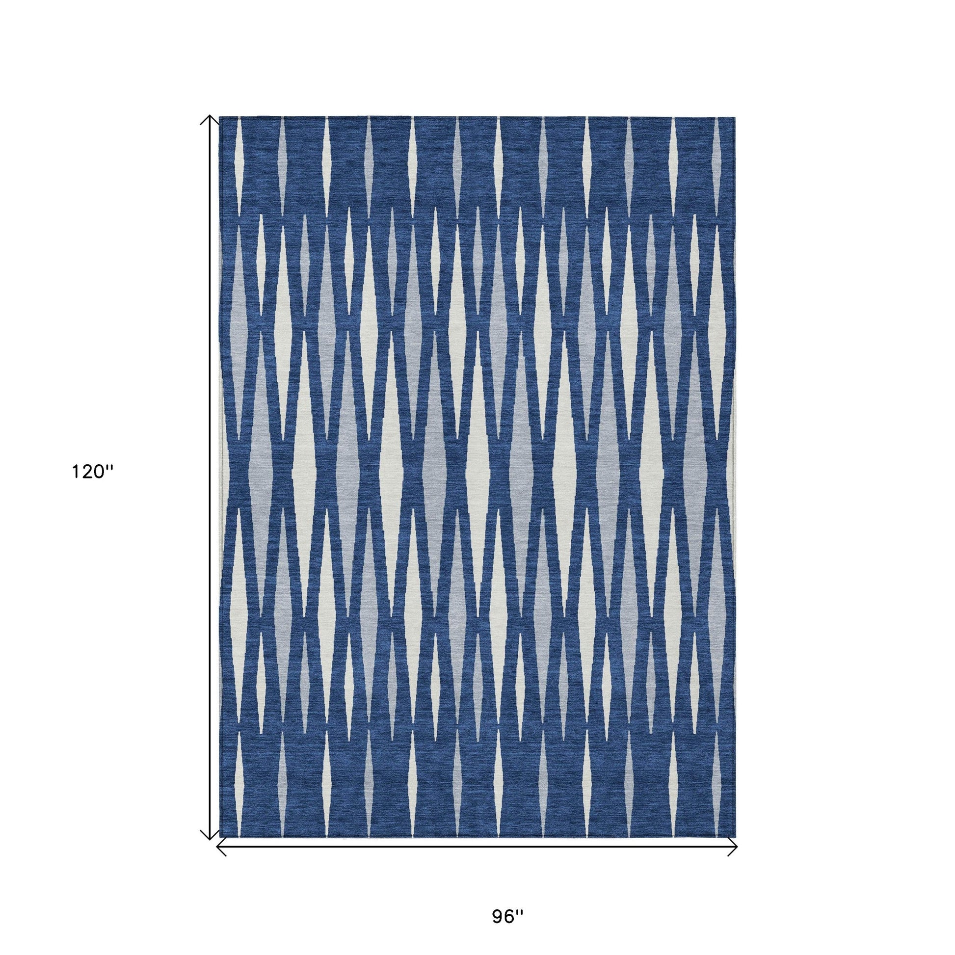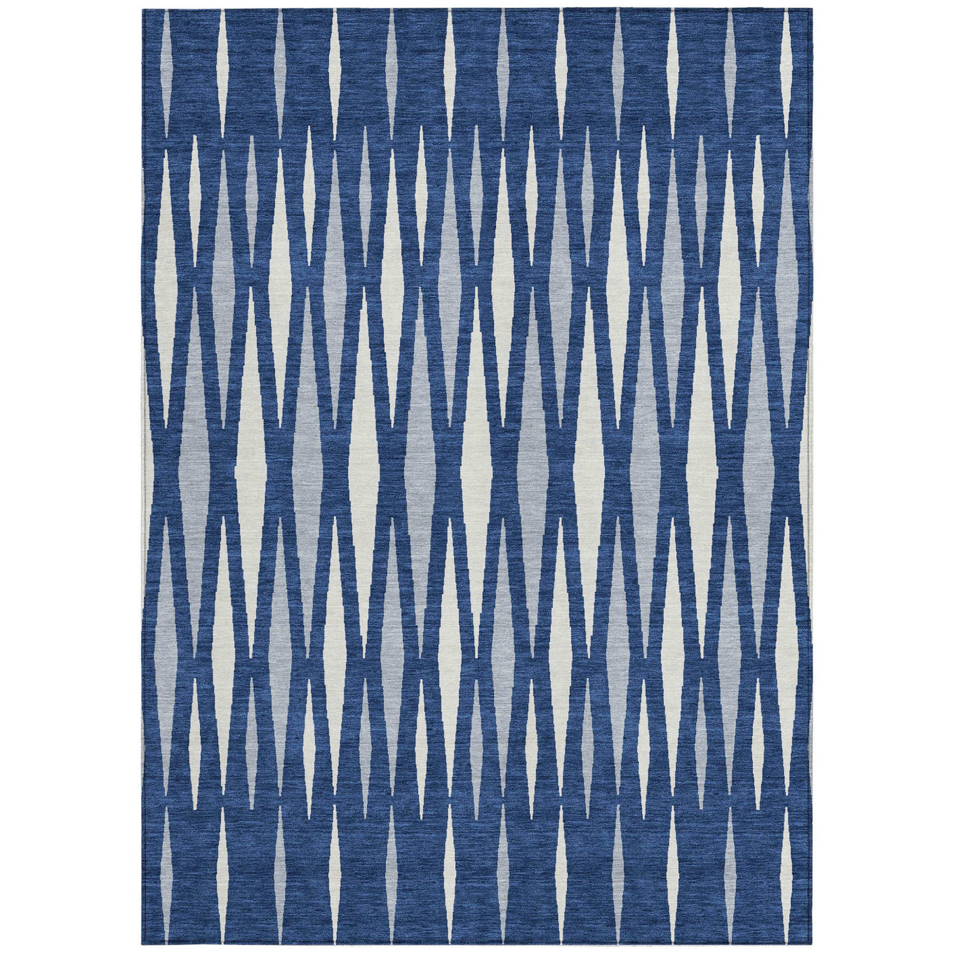 Tabselect Home Line 8' X 10' Navy Blue Gray And Ivory Geometric Washable Indoor Outdoor Area Rug