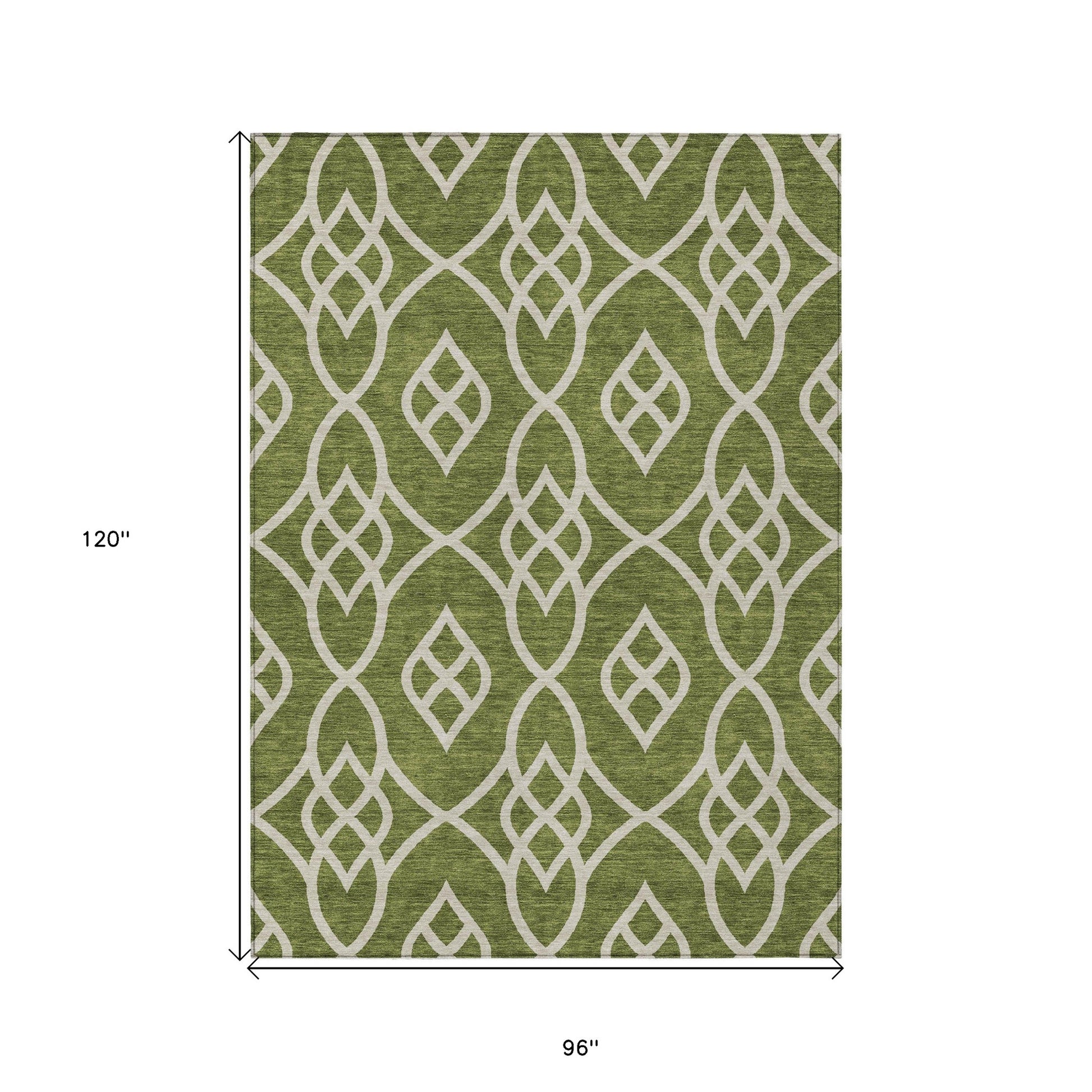 Tabselect Home Line 8' X 10' Olive Green And Ivory Trellis Washable Indoor Outdoor Area Rug