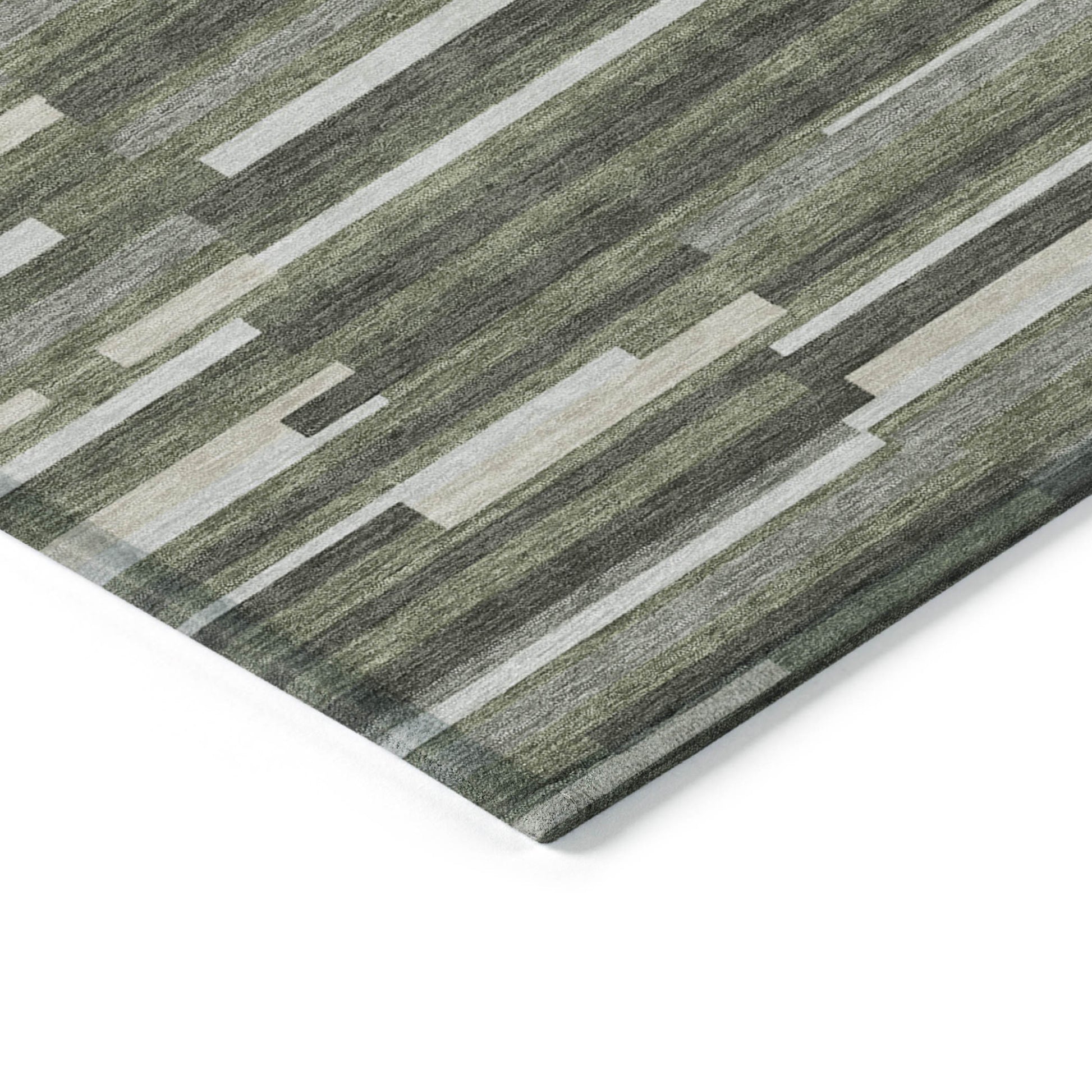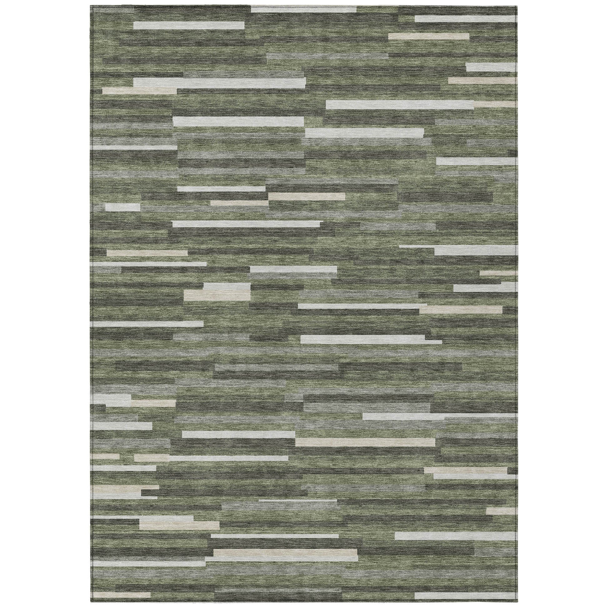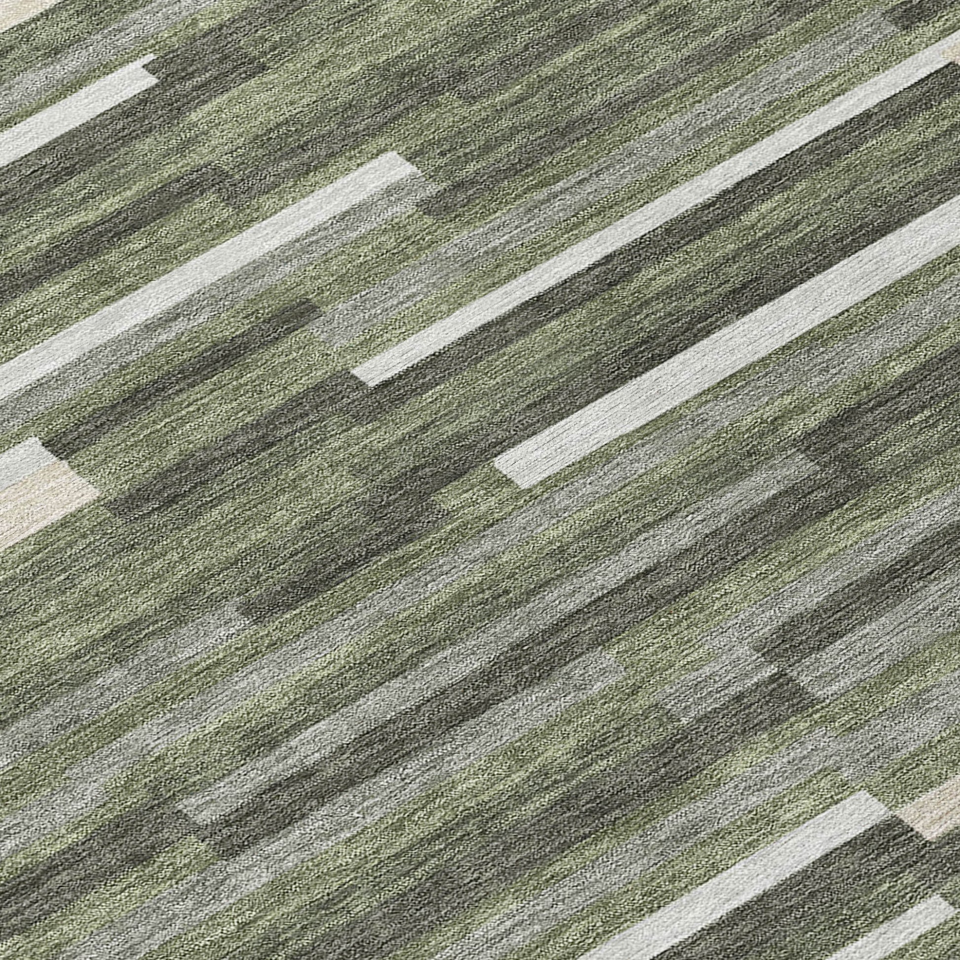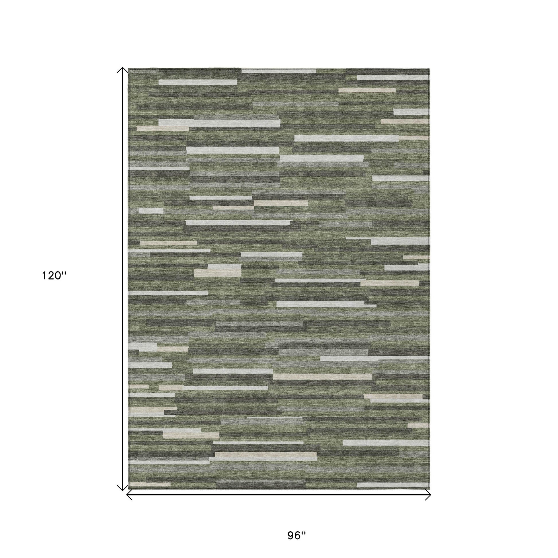 Tabselect Home Line 8' X 10' Olive Green Gray And Ivory Striped Washable Indoor Outdoor Area Rug