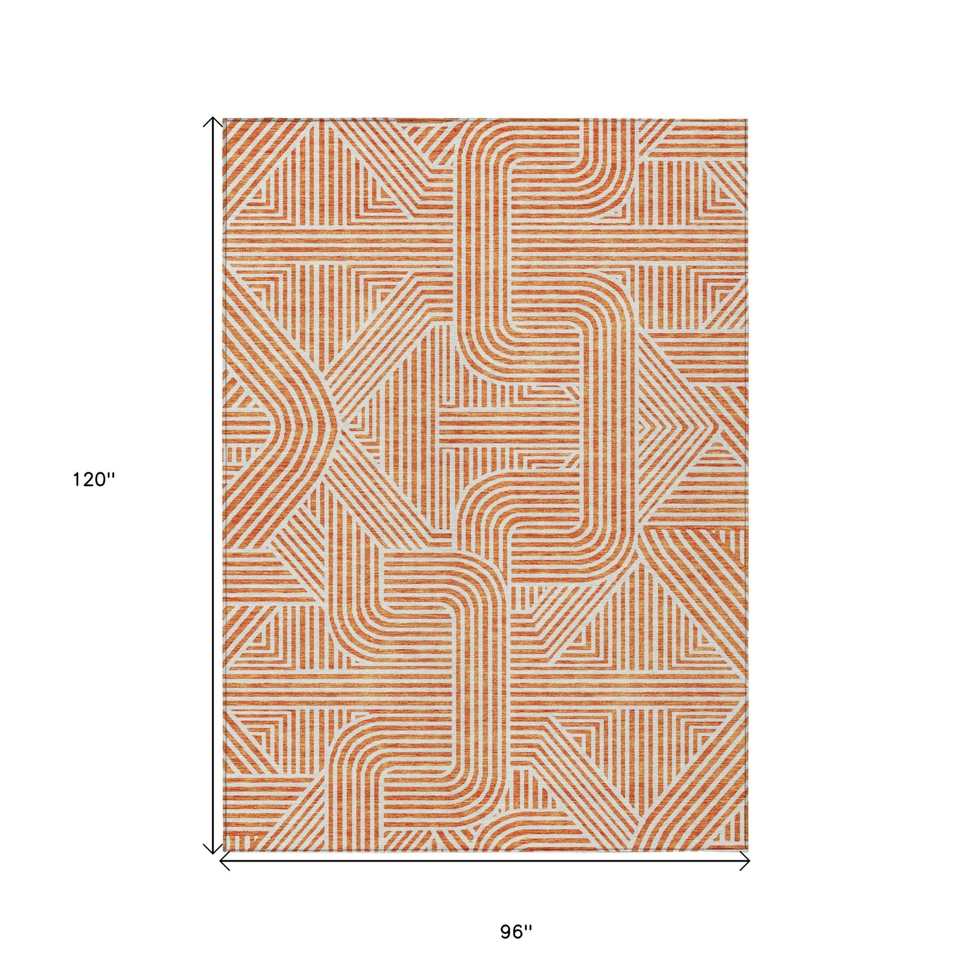 Tabselect Home Line 8' X 10' Orange And Ivory Abstract Washable Indoor Outdoor Area Rug