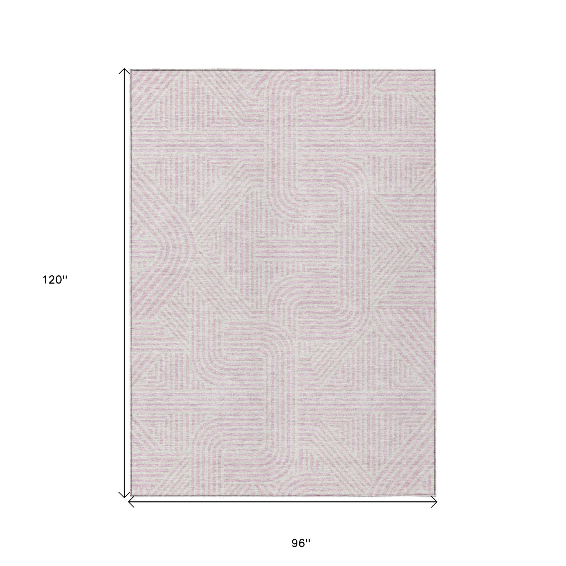 Tabselect Home Line 8' X 10' Pink And Ivory Abstract Washable Indoor Outdoor Area Rug