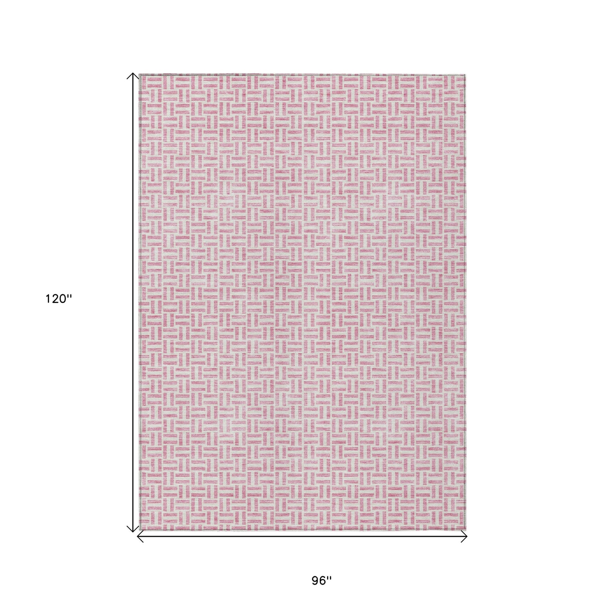 Tabselect Home Line 8' X 10' Pink And Silver Geometric Washable Indoor Outdoor Area Rug
