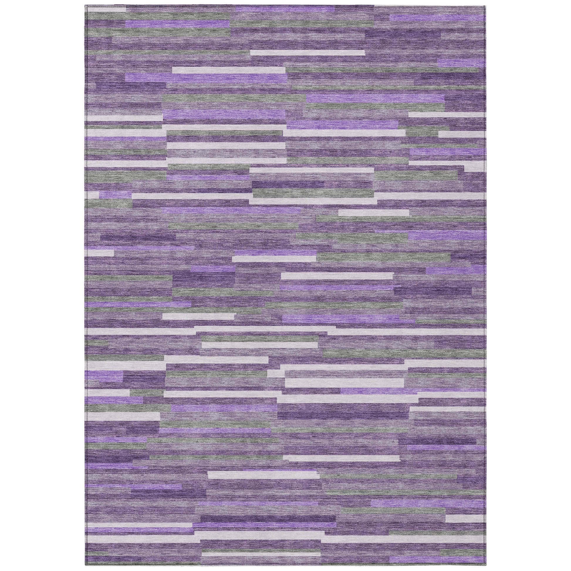 Tabselect Home Line 8' X 10' Purple And Gray Striped Washable Indoor Outdoor Area Rug