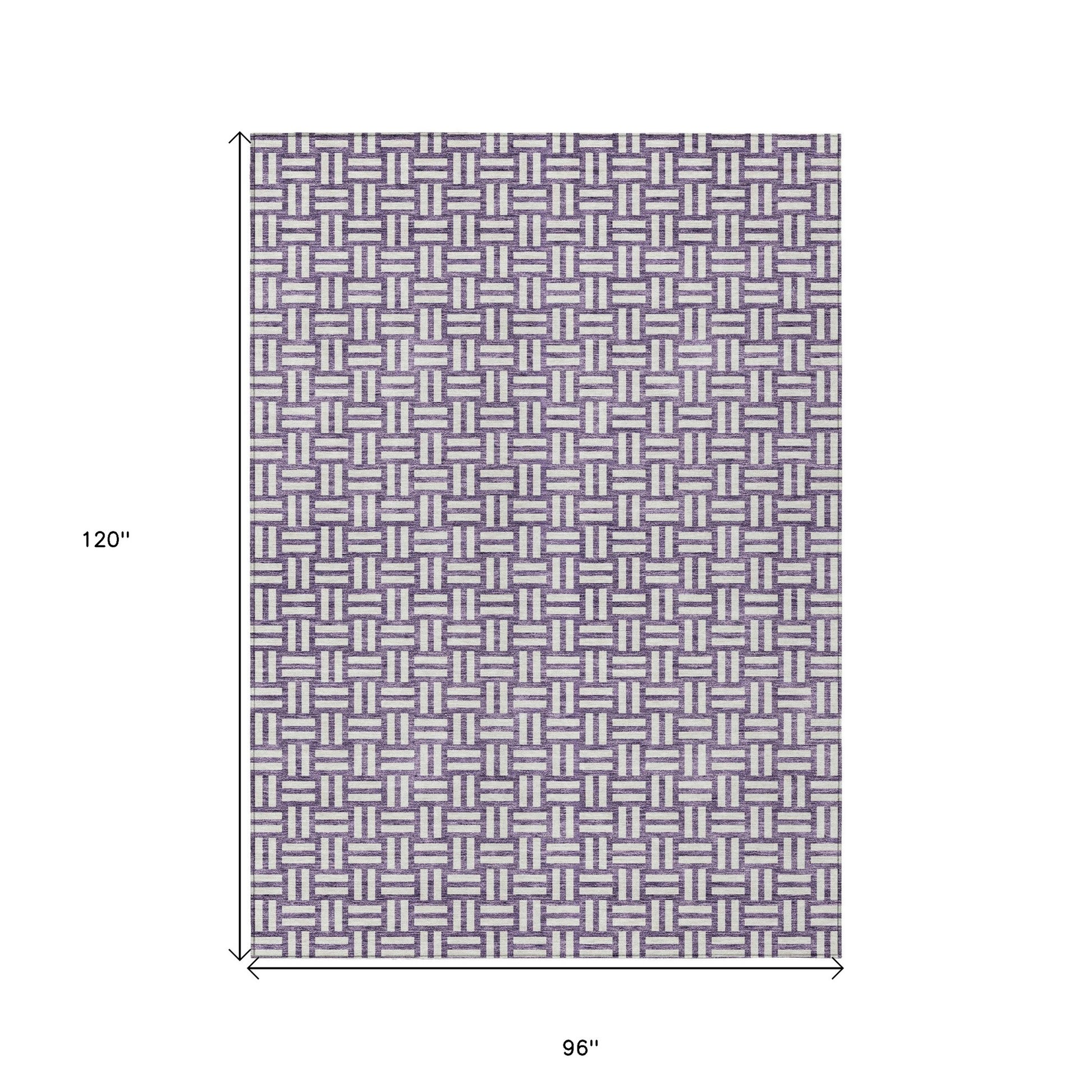 Tabselect Home Line 8' X 10' Purple And Ivory Geometric Washable Indoor Outdoor Area Rug