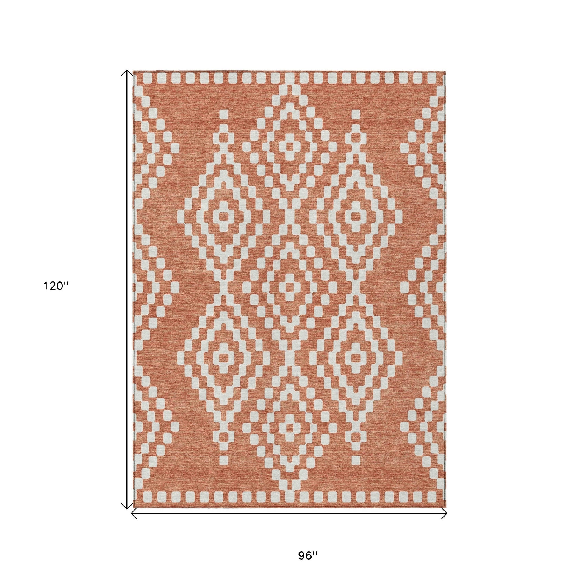 Add great coloration and comfortable texture to your space with this 8-foot x 10-foot salmon and ivory geometric washable indoor outdoor area rug. This rectangle shaped rug features a geometric design that will work well both indoors or out. A classic shape marries with good looking design for your living room, hall, bedroom, porch, patio, or poolside. Ideal for outdoor spaces or high traffic areas with kids and pets, this rug is made from heavy duty polyester that is stain resistant to help repel water, dirt, and stains. Makes a great way to dress up your patio, porch, or poolside, but also works well as a durable and easy to maintain option in the kitchen, family room, or mudroom. 96-inch h x 120-inch w x 0.19-inch d.