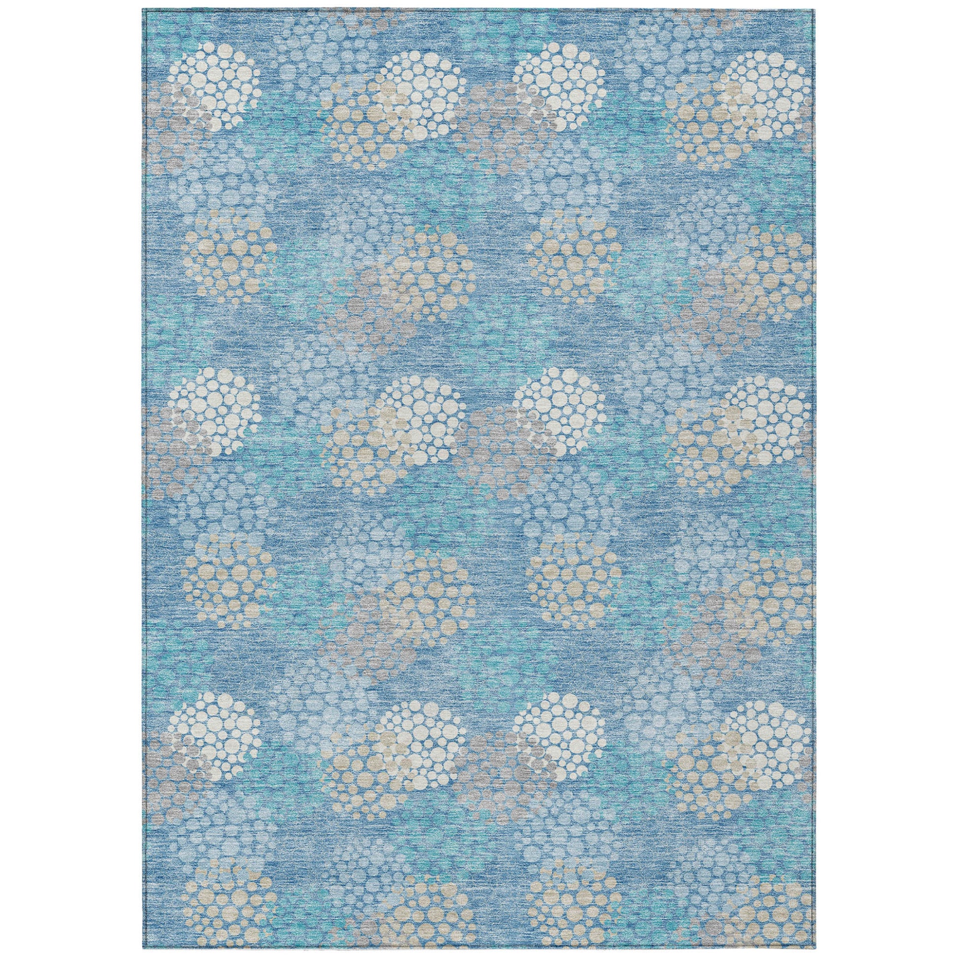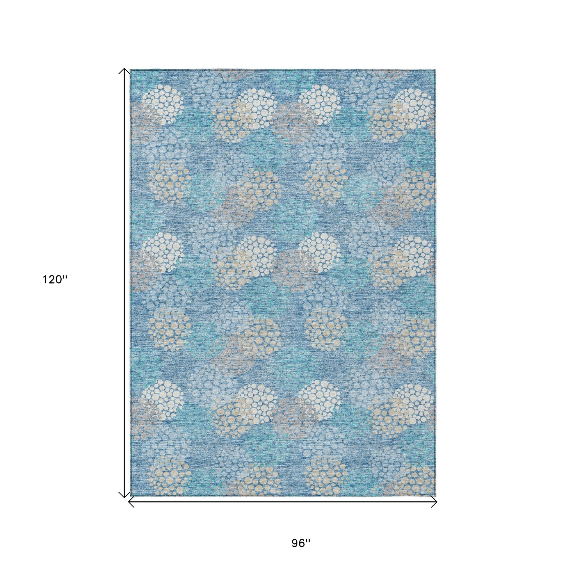 Tabselect Home Line 8' X 10' Sky Blue Gray And Ivory Polka Dot Washable Indoor Outdoor Area Rug