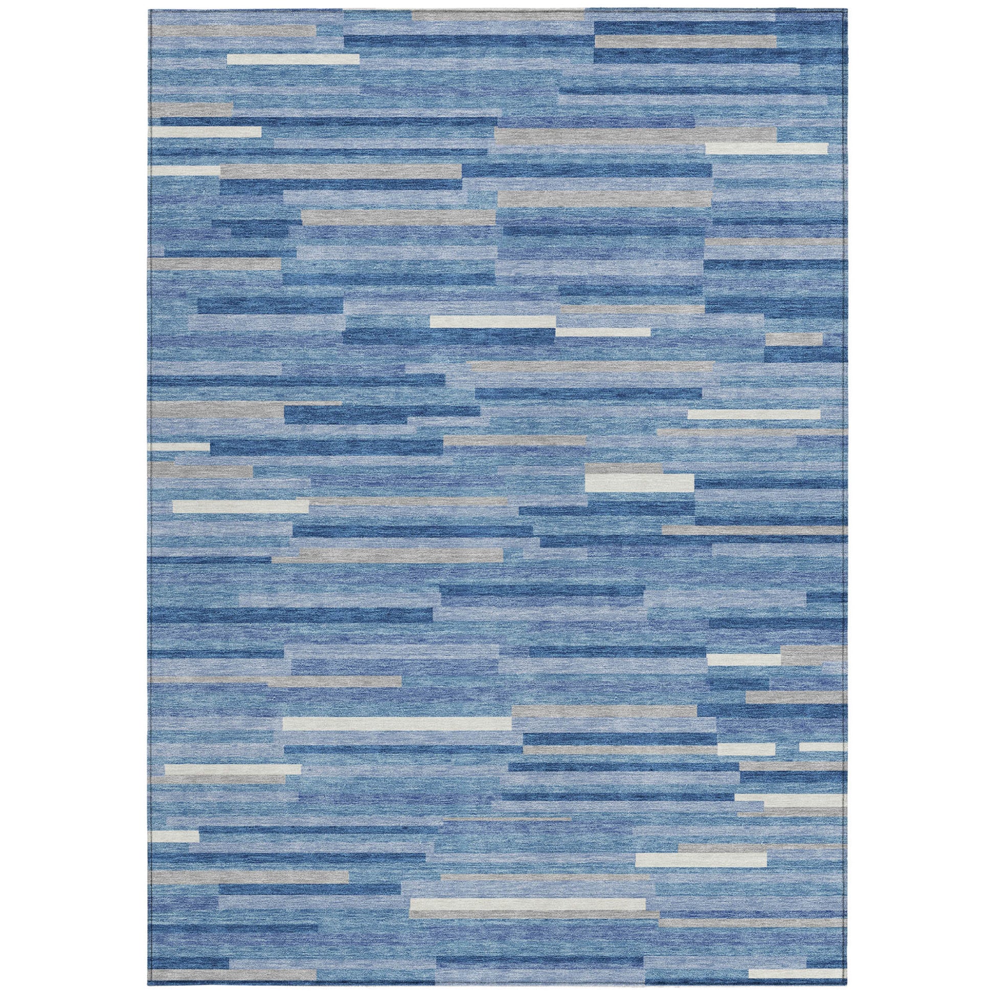 Tabselect Home Line 8' X 10' Sky Blue Gray And Ivory Striped Washable Indoor Outdoor Area Rug