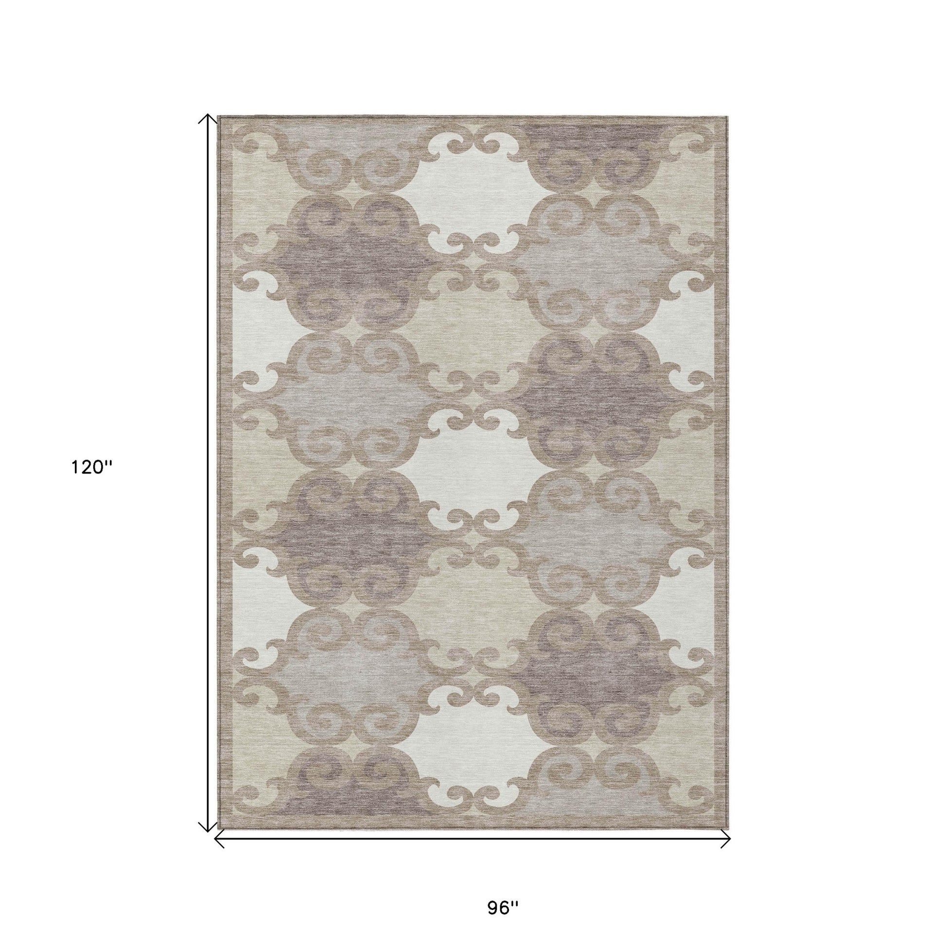 Tabselect Home Line 8' X 10' Taupe Beige And Gray Trellis Washable Indoor Outdoor Area Rug
