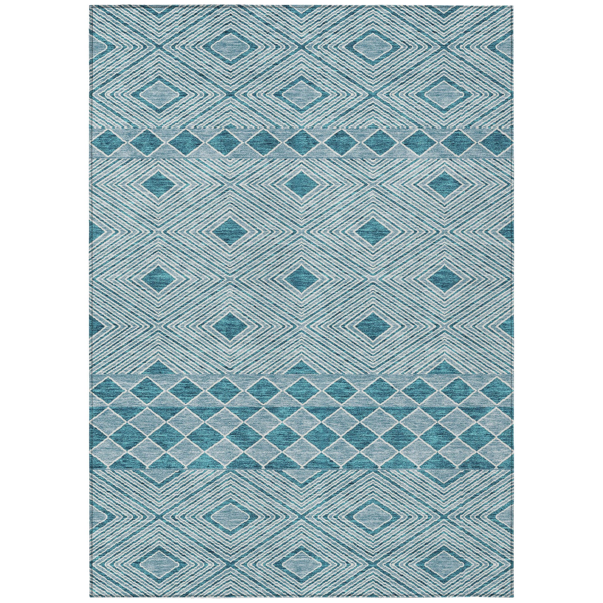 Tabselect Home Line 8' X 10' Teal Blue And Aqua Geometric Washable Indoor Outdoor Area Rug