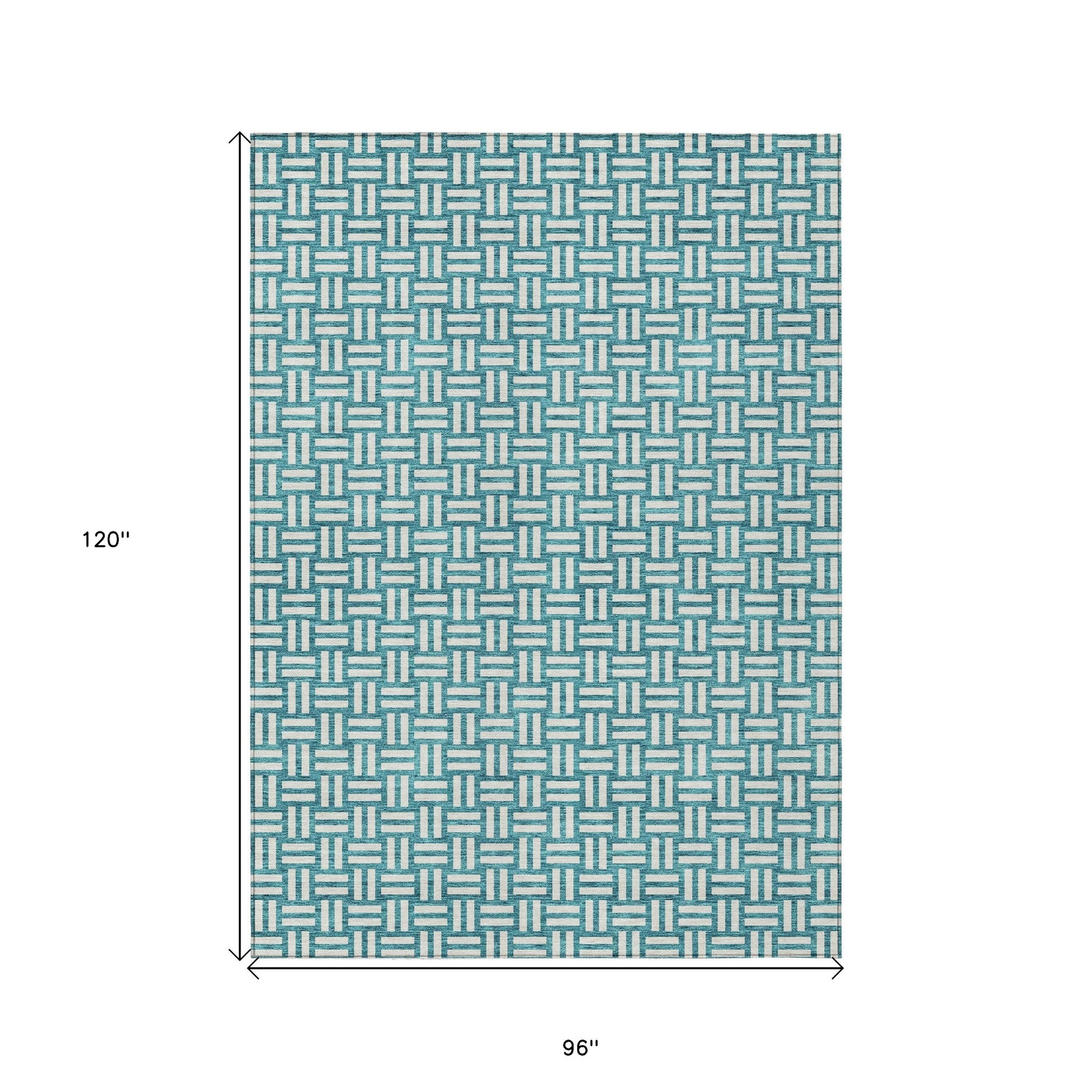 Tabselect Home Line 8' X 10' Teal Blue And Gray Geometric Washable Indoor Outdoor Area Rug