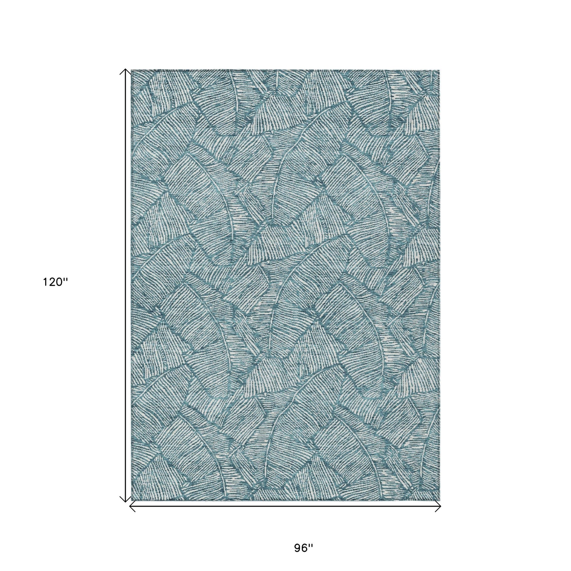 Tabselect Home Line 8' X 10' Teal Blue And Ivory Floral Washable Indoor Outdoor Area Rug