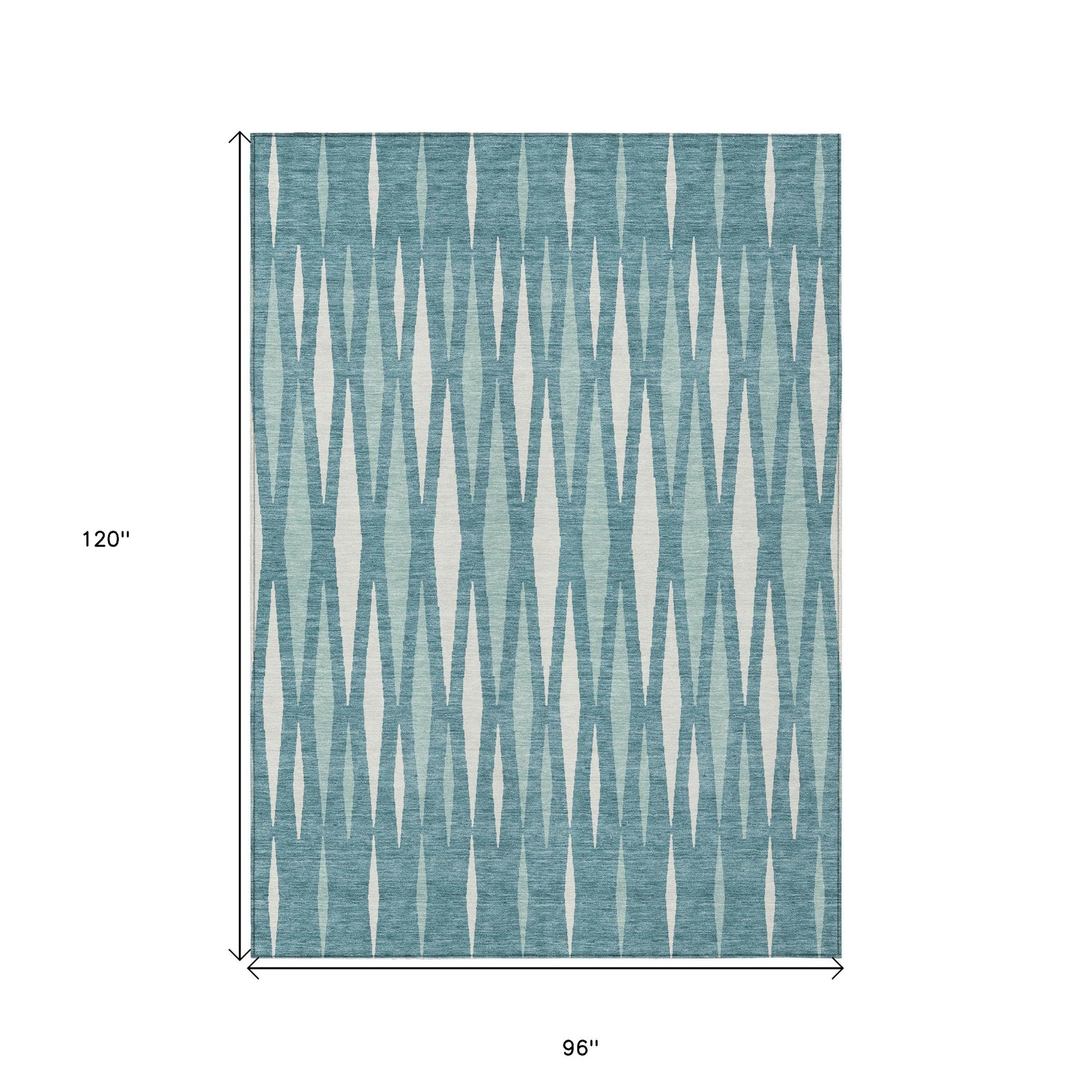 Tabselect Home Line 8' X 10' Teal Blue And Ivory Geometric Washable Indoor Outdoor Area Rug