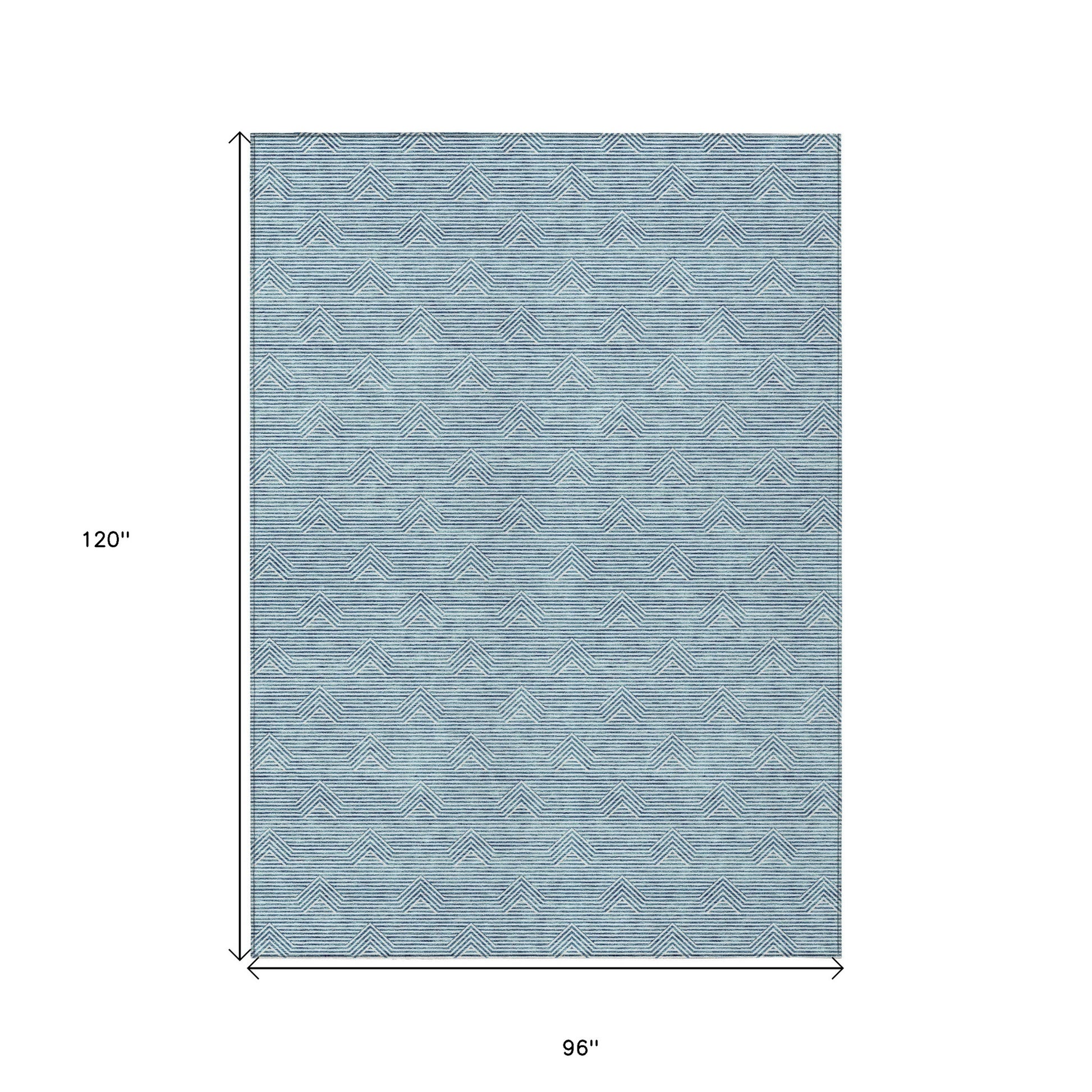 Tabselect Home Line 8' X 10' Teal Blue And Ivory Geometric Washable Indoor Outdoor Area Rug