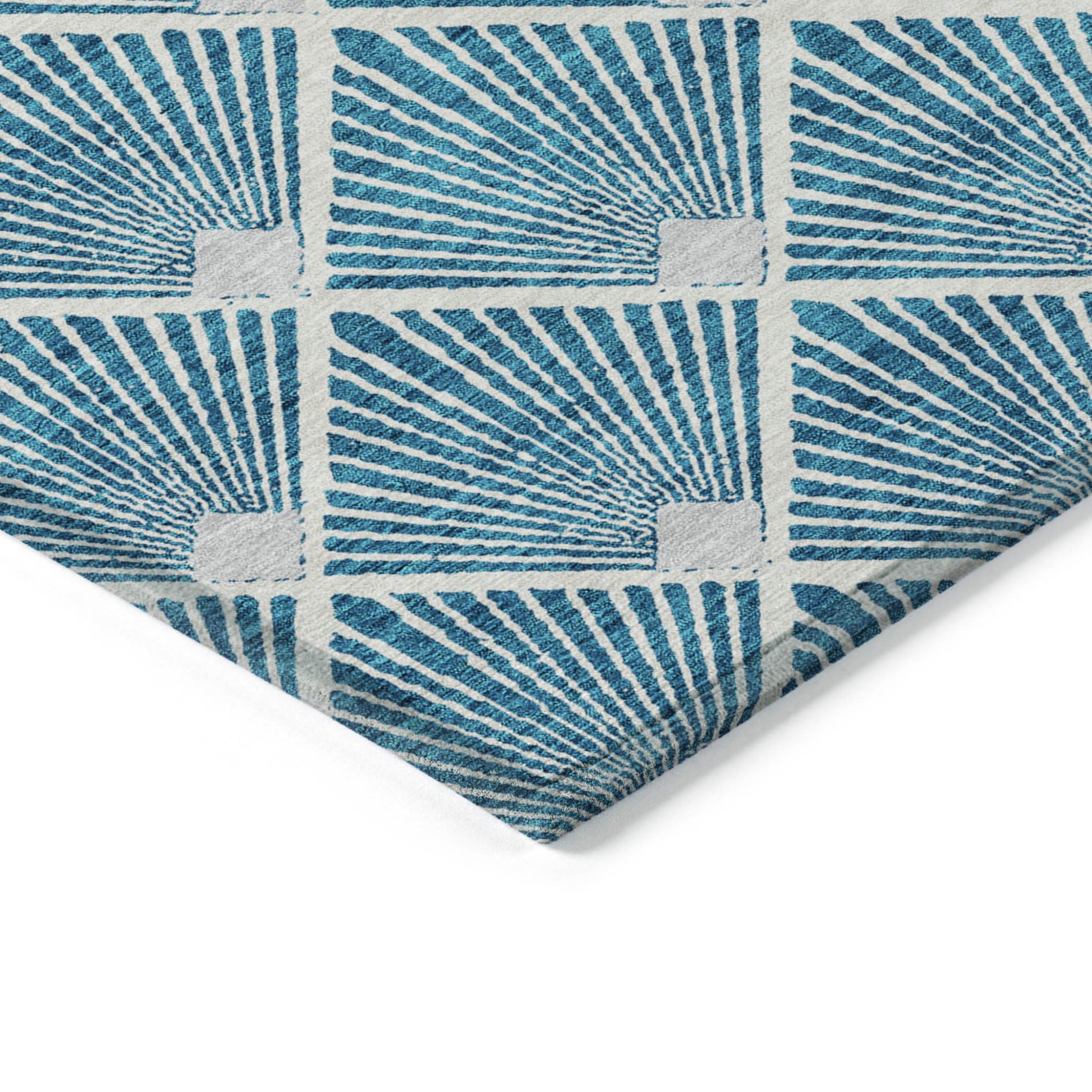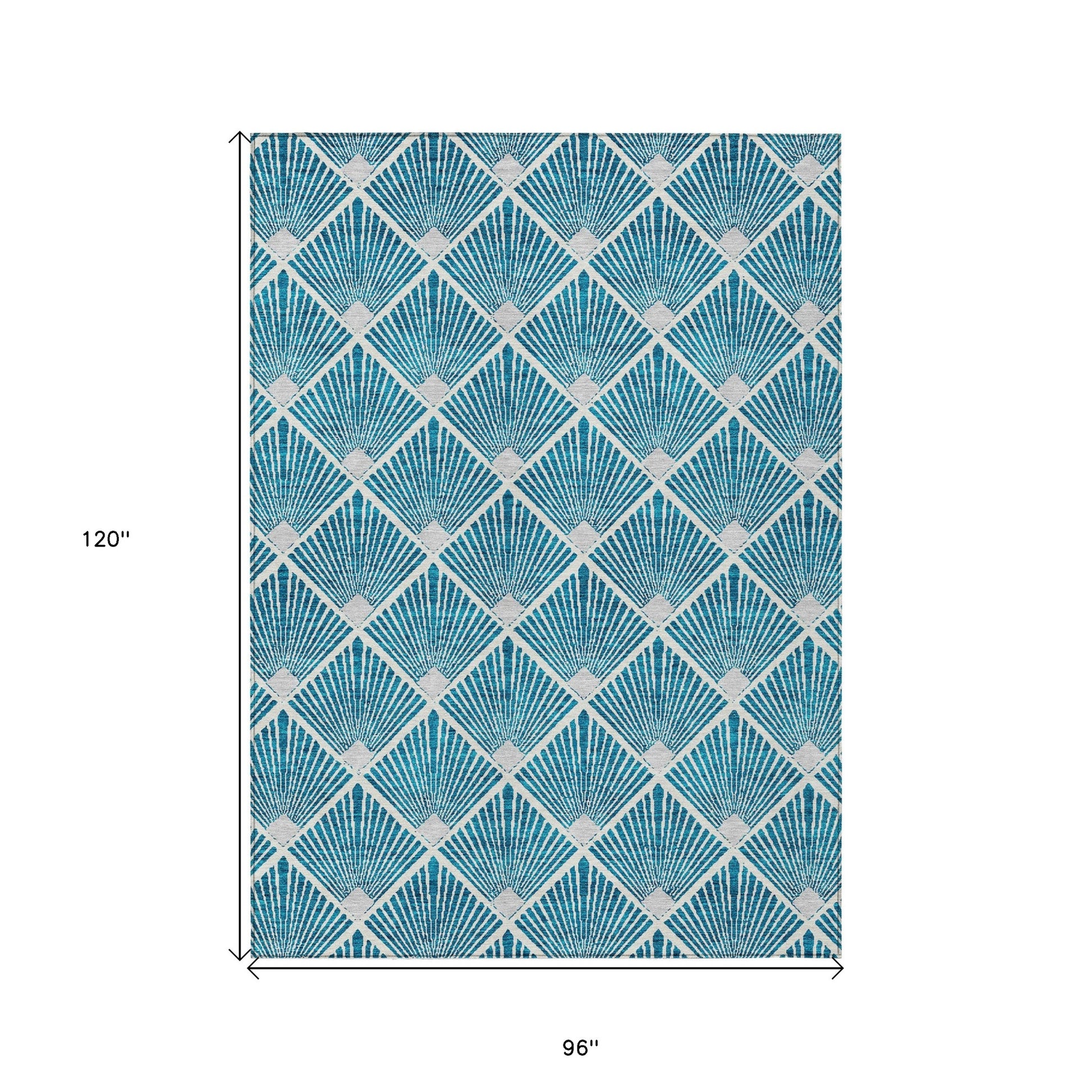 Tabselect Home Line 8' X 10' Teal Blue And Ivory Geometric Washable Indoor Outdoor Area Rug
