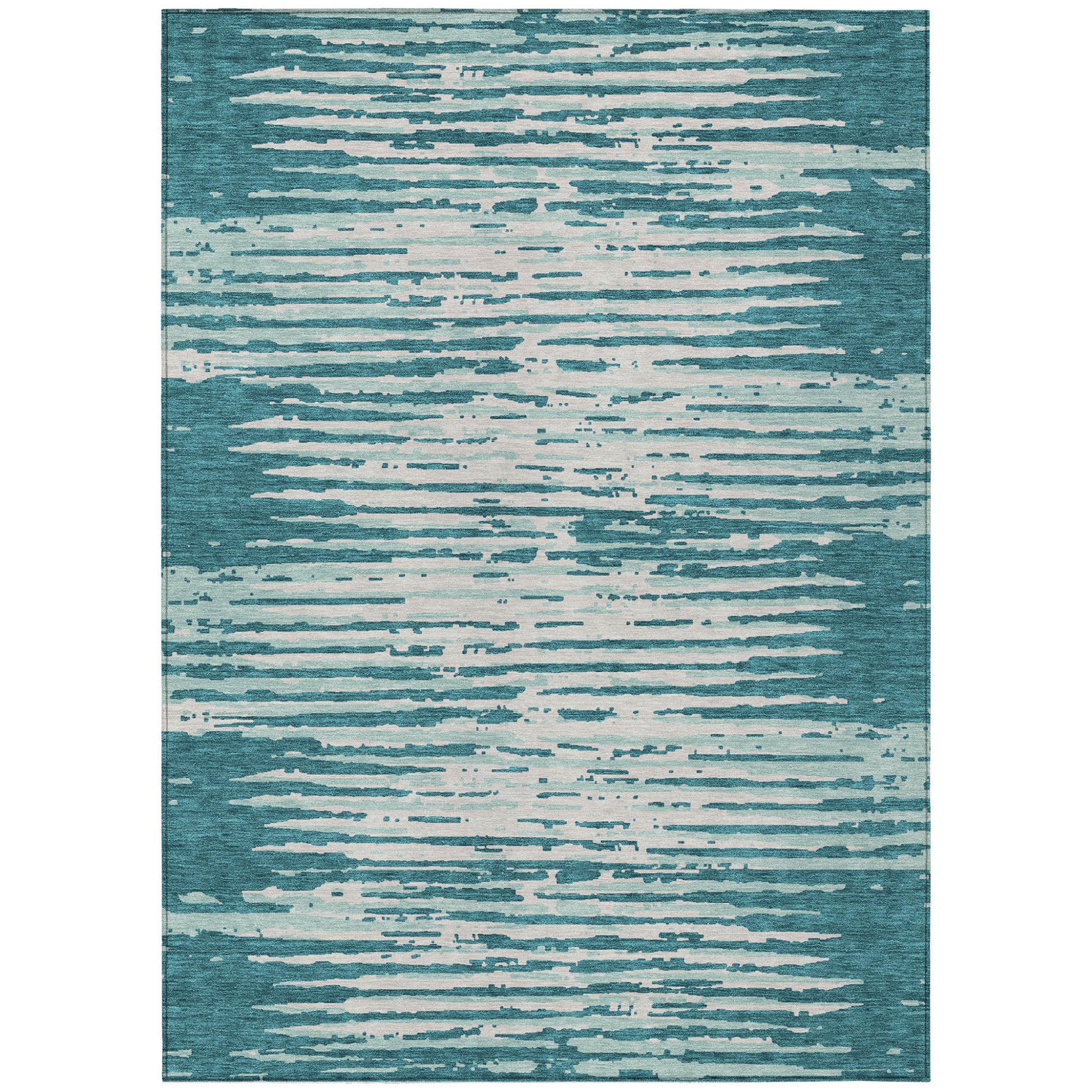Tabselect Home Line 8' X 10' Teal Blue And Ivory Striped Washable Indoor Outdoor Area Rug