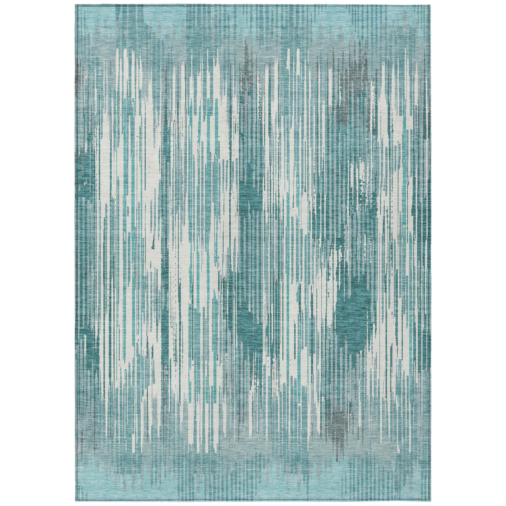 Tabselect Home Line 8' X 10' Teal Blue And Ivory Striped Washable Indoor Outdoor Area Rug