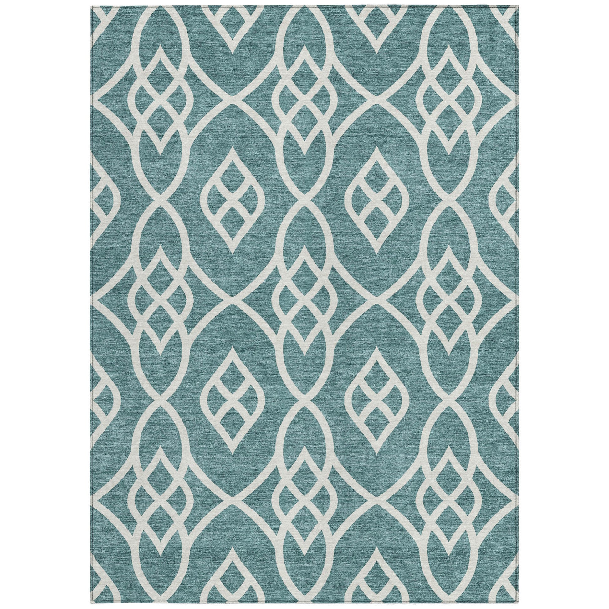 Tabselect Home Line 8' X 10' Teal Blue And Ivory Trellis Washable Indoor Outdoor Area Rug