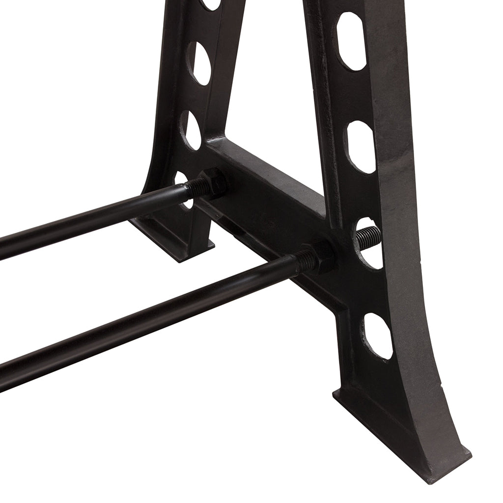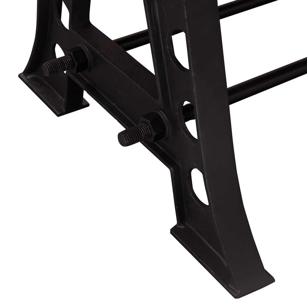 Practicality and functionality seamlessly combine with the industrial-inspired black wrought iron table base.