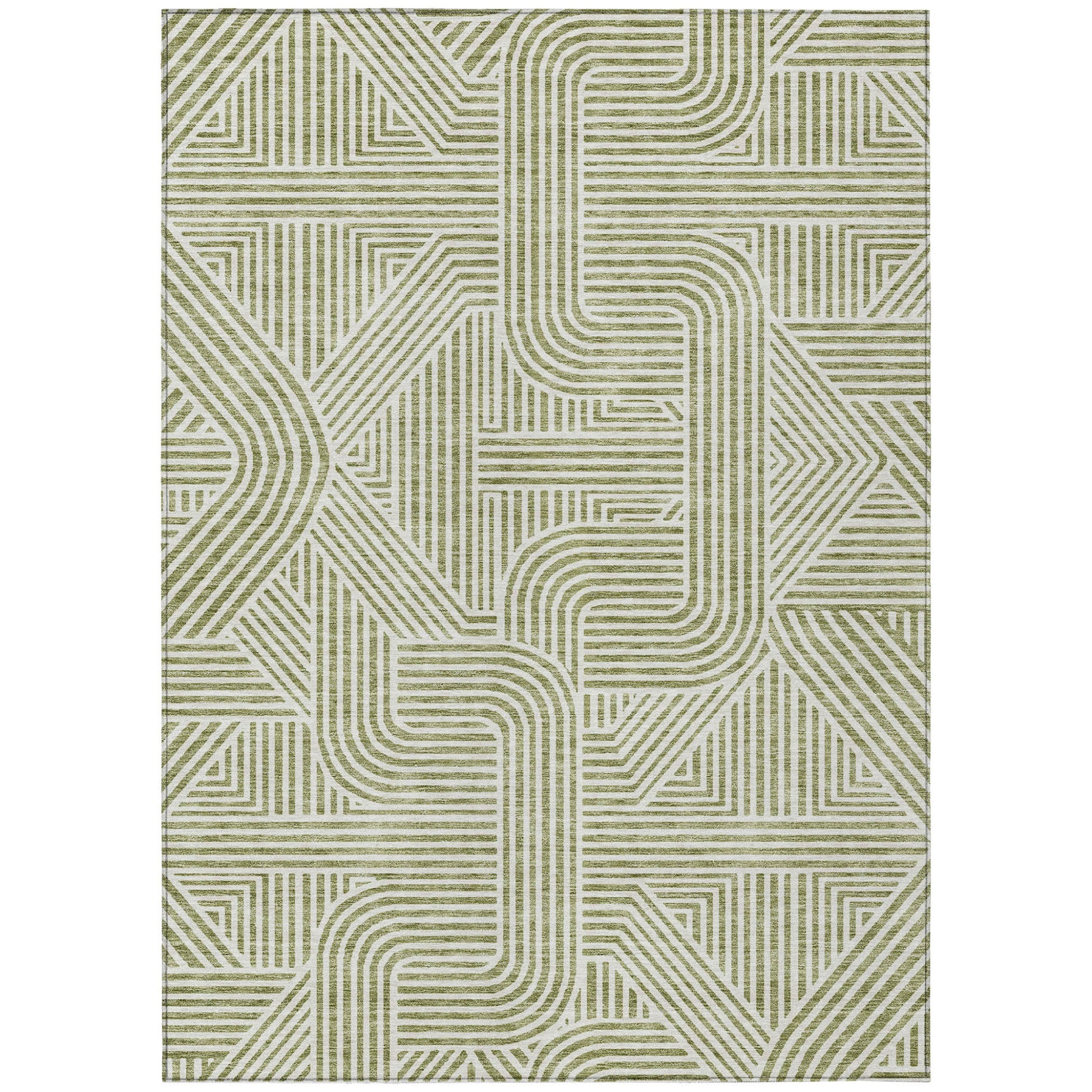 Tabselect Home Line 9' X 12' Artichoke Green And Ivory Abstract Washable Indoor Outdoor Area Rug