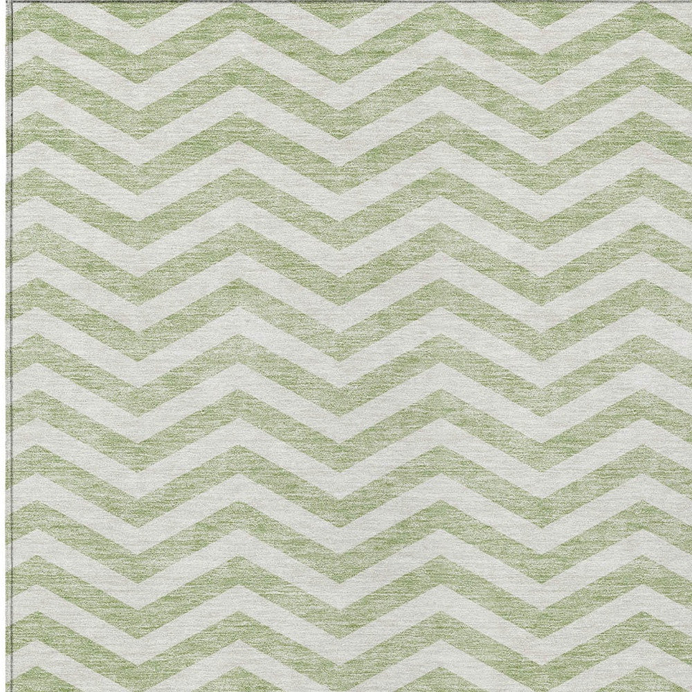 Tabselect Home Line 9' X 12' Artichoke Green And Ivory Chevron Washable Indoor Outdoor Area Rug