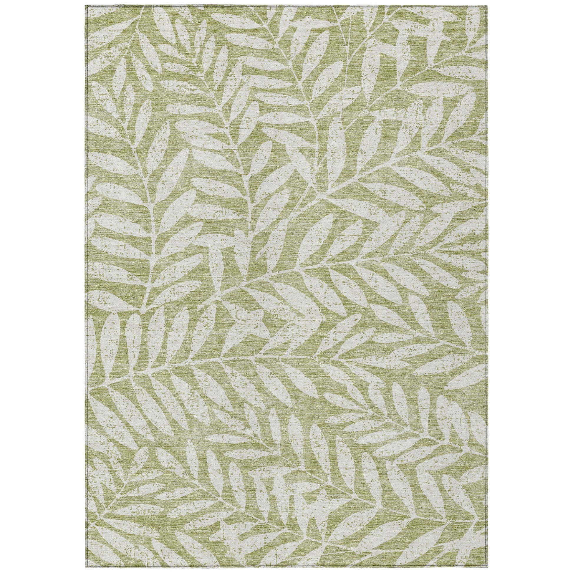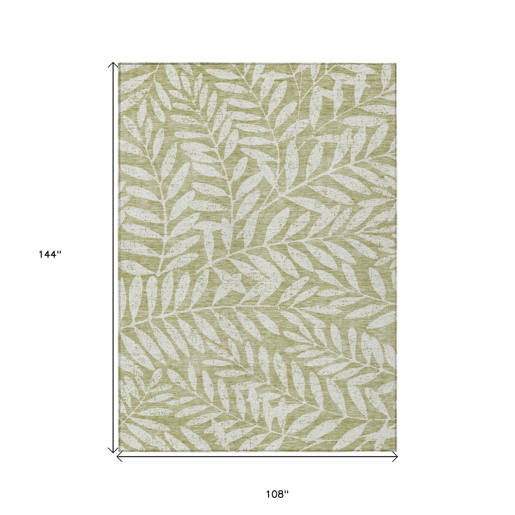 Tabselect Home Line 9' X 12' Artichoke Green And Ivory Floral Washable Indoor Outdoor Area Rug
