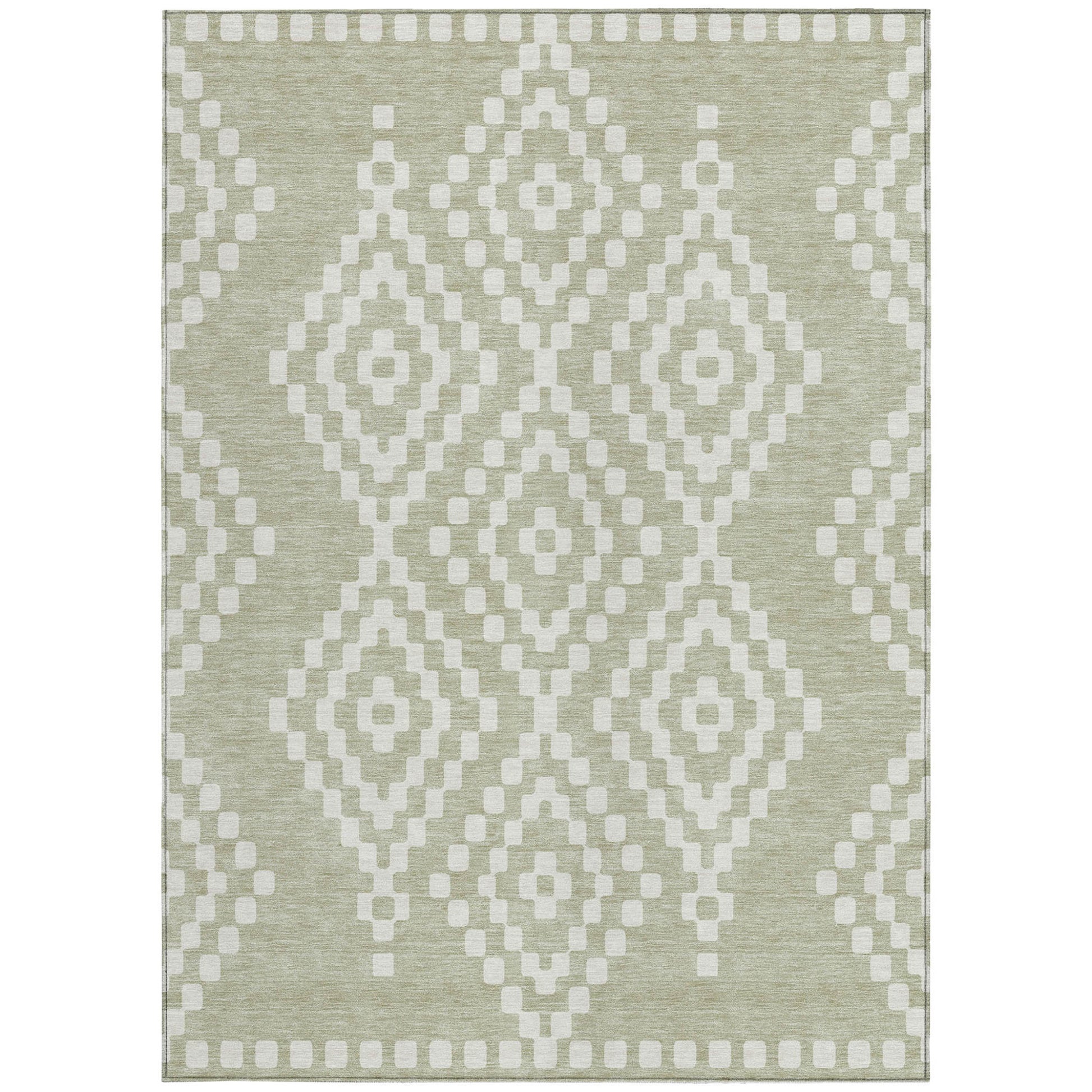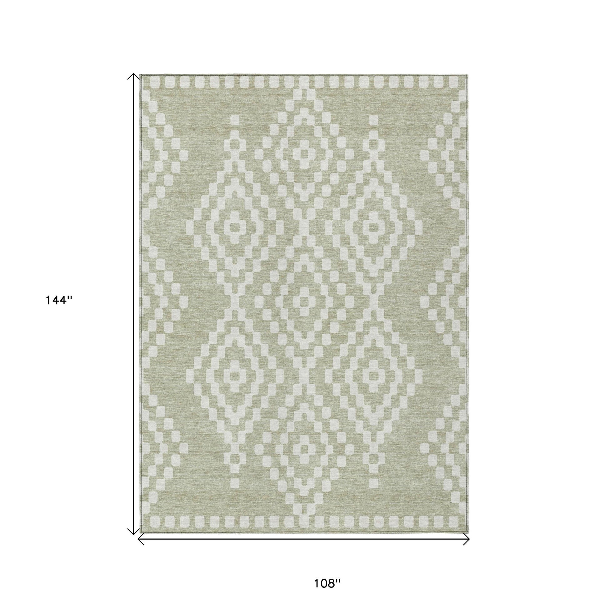 Tabselect Home Line 9' X 12' Artichoke Green And Ivory Geometric Washable Indoor Outdoor Area Rug