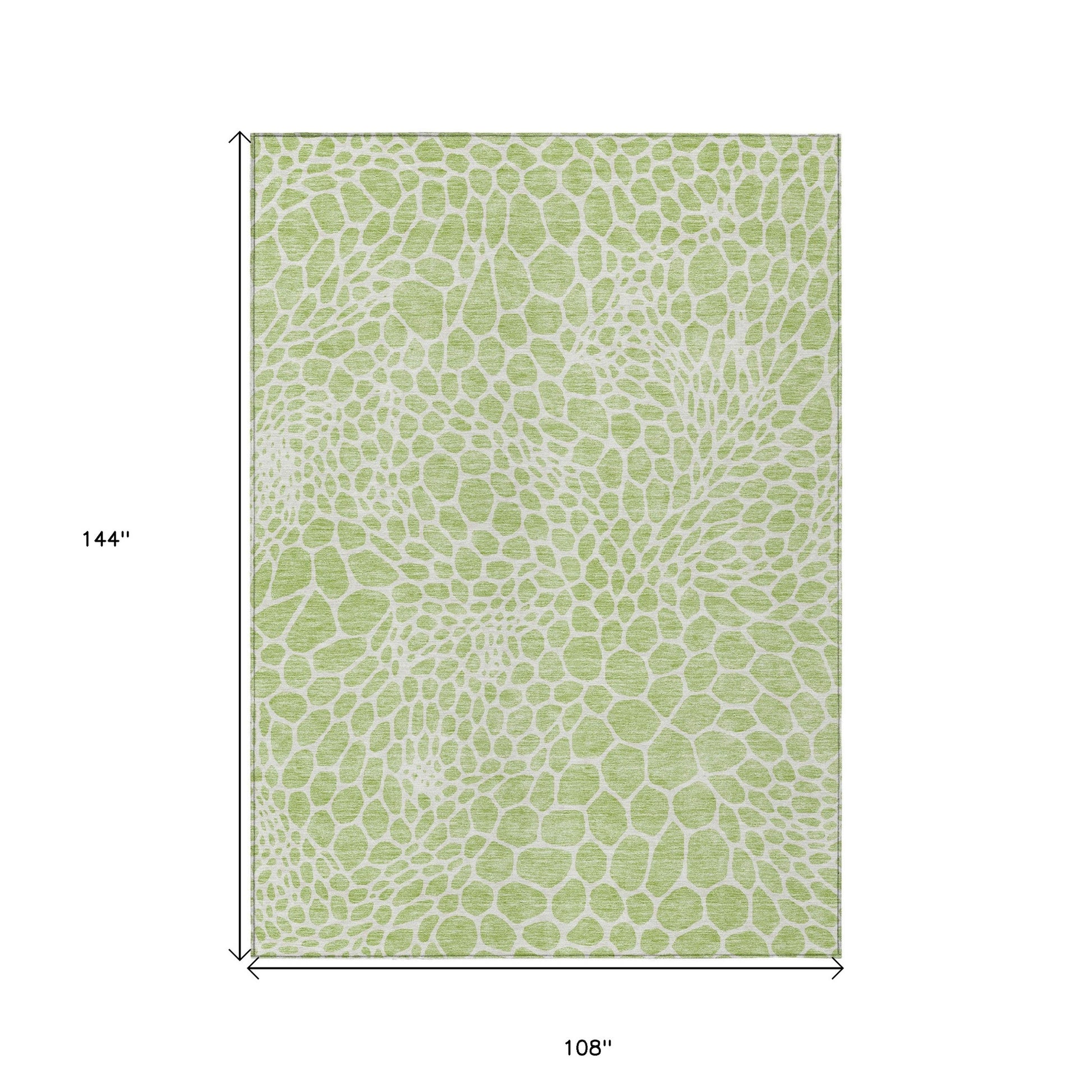 Tabselect Home Line 9' X 12' Artichoke Green And Ivory Geometric Washable Indoor Outdoor Area Rug