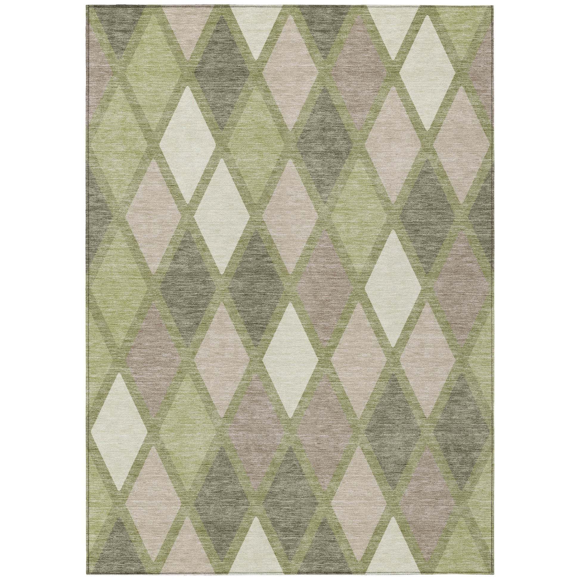 Tabselect Home Line 9' X 12' Artichoke Green Beige And Ivory Geometric Washable Indoor Outdoor Area Rug
