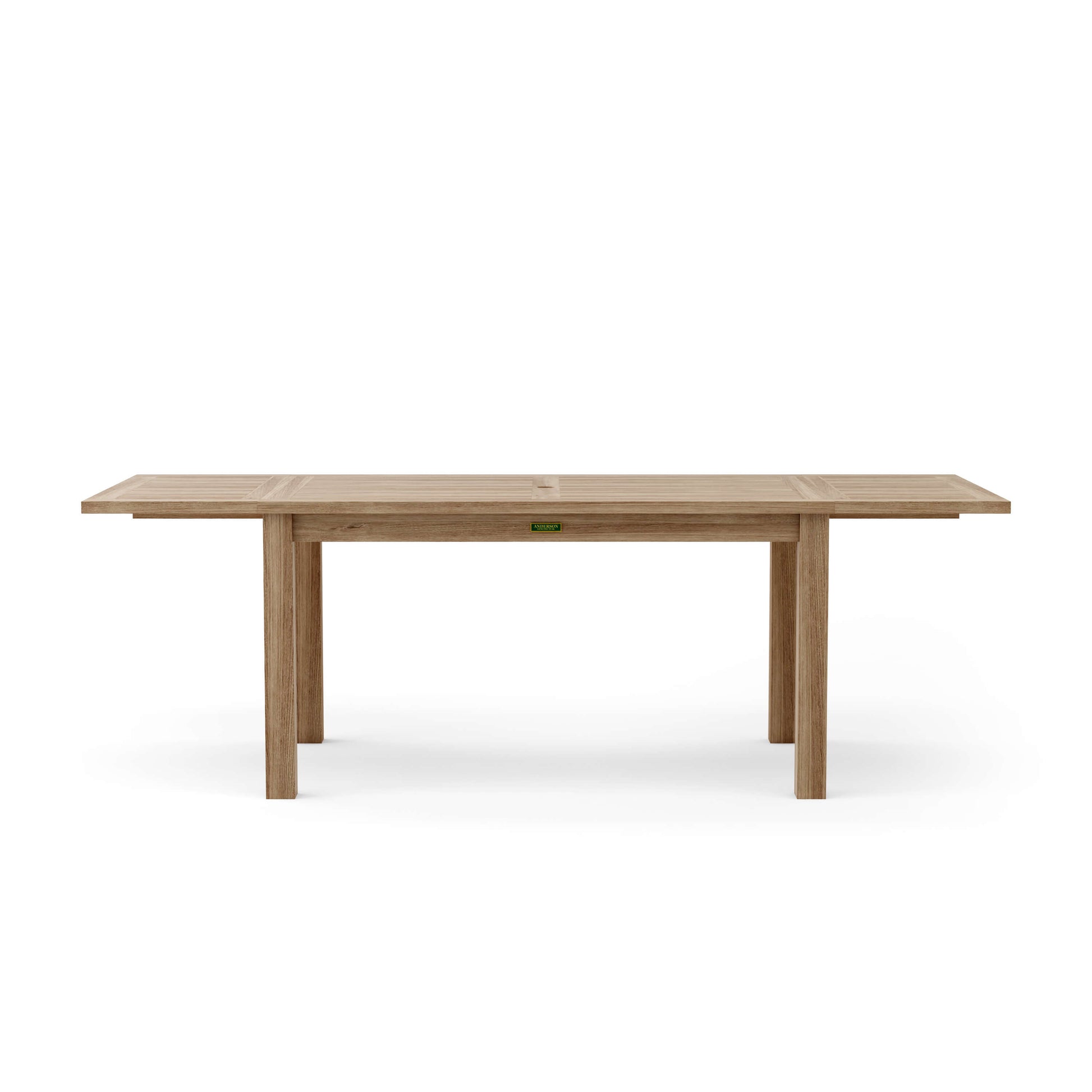 This Solid Teak “Rectangular Extension Table” makes the perfect addition to your home or backyard. Our extension table begins as a 59-inch long rectangular and easily extends with detachable leaves to a 95-inch long rectangular in less than 15 seconds. The table can be extended with 1 or 2 leaves, seating 6 to 10 people comfortably. Available with umbrella hole in the center and brass plug when not in use. The table arrives with 10 Rialto Dining Chairs featuring curved seating and back support which makes it a most comfortable dining chair to sit on. Add all-weather cushions from Sunbrella for extra comfort. All pieces manufactured from premium grade unfinished teak wood.