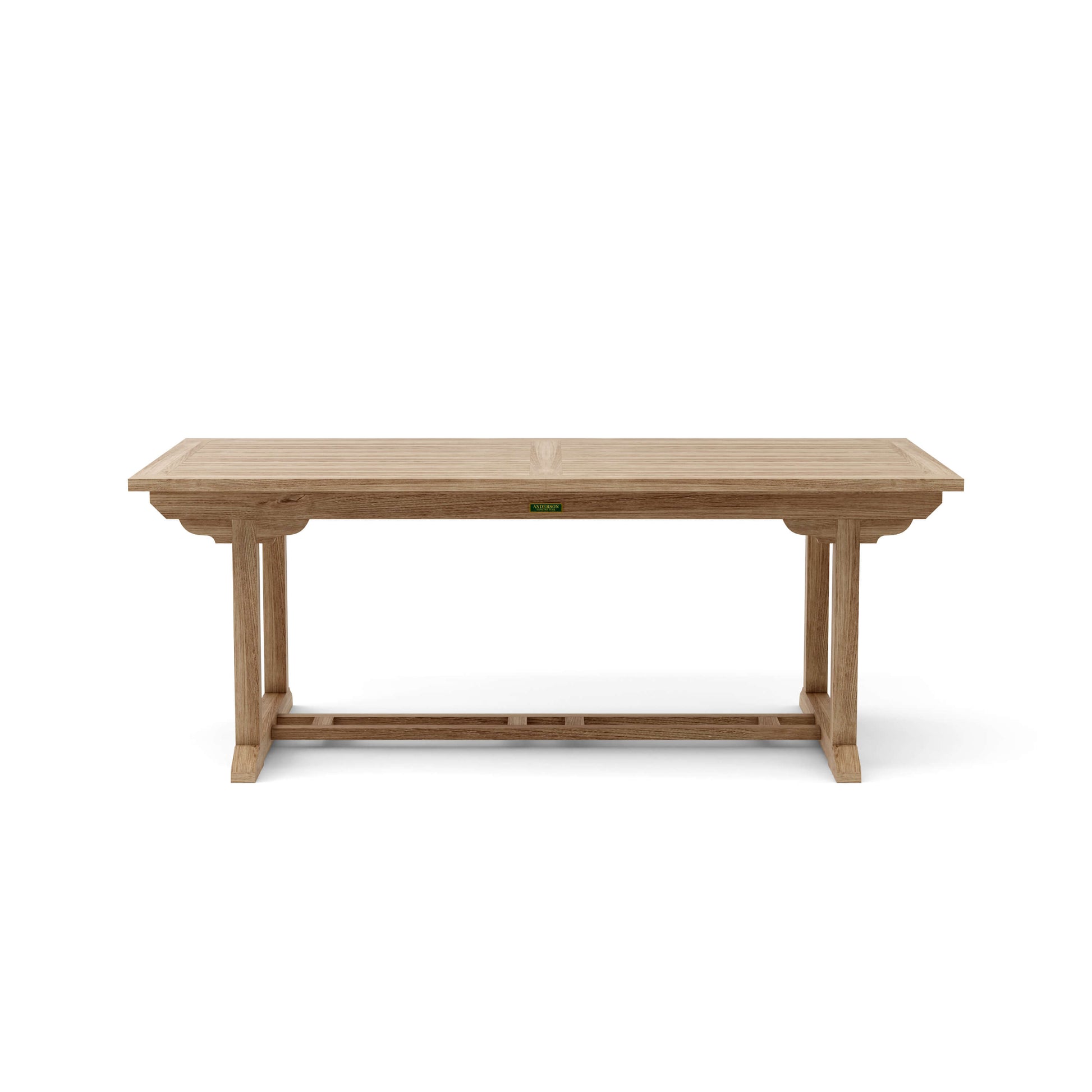 The Bahama Rectangular Extension Table makes the perfect addition to your patio or backyard. The unique built-in butterfly pop-up leaf enables you to open and close your table in less than 15 seconds. The leaf folds under for easy storage. This table stands 29″ high and is 39″ wide by 78″ long and if fully extended can reach an opening of 118″ long. The table can be extended with 1 leaf, seating 10 to 12 people comfortably. The table has a 2" umbrella hole in the center when the leaf opens; with brass plug included when not in use. This table set arrives with eight Sahara Dining Chair & two Armchairs with contoured seats and traditional curved back style to keep you supported comfortably. The style will never go out, but quietly blends with any decor. Built with authentic extra thick Grade-A quality teak unfinished and sanded smooth for a natural authentic feel. Quality that will last for generations.