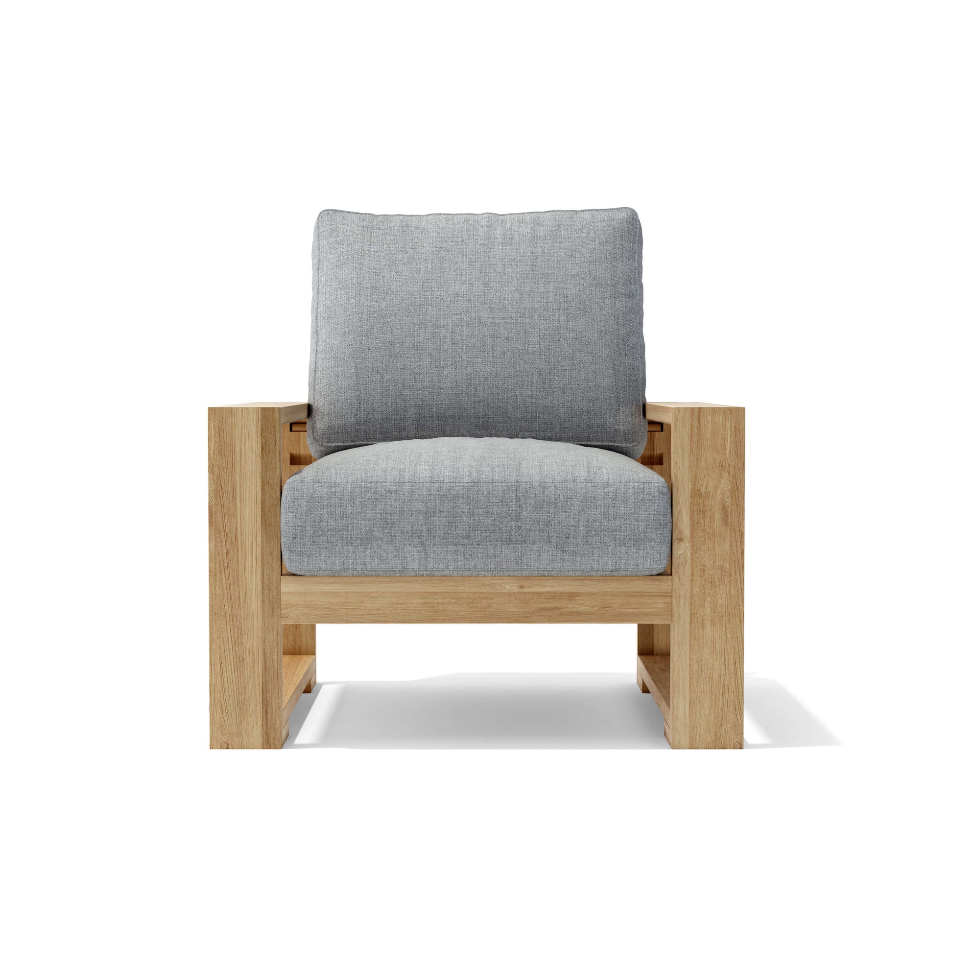 This Capistrano Deep Seating Armchair is the perfect addition for any home or patio décor. Crafted from Grade-A Teak unfinished and sanded smooth, its supported with Sunbrella All Weather cushions that will last outdoors without mildew or discoloration. A perfect match with any piece of the Capistrano Collections, it is elegant, modern and stylish. It comes knocked down, with easy assembly and back support adjustable up to four positions. Available as part of the Capistrano Deep Seating Collection which includes the Capistrano Loveseat, Sofa, Ottoman, Coffee Table and Side Table.