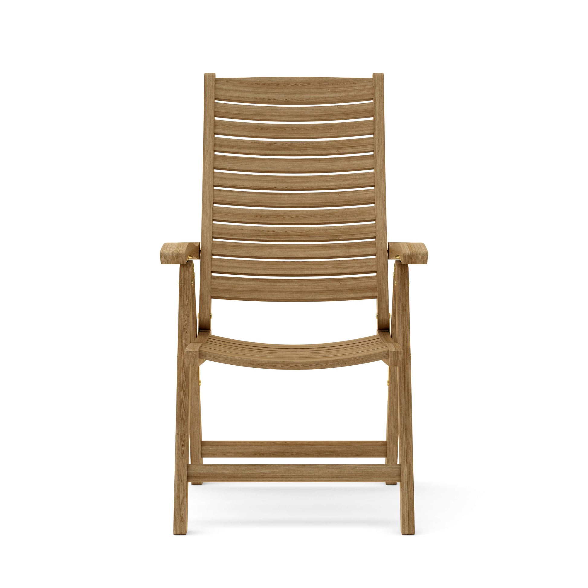 The Carina Five-Position Reclining Chair is easily adjusted from an upright dining position to a relaxed reading position to a reclined position to suit your pleasure. The chairs also folds easily for moving and storing so you can accommodate guests when you need to and hide the set when you don’t. With a 5-position adjustment, our recliners are very comfortable and versatile. A simple ratchet action makes adjustment quick and easy. Made from genuine grade teak, it is sanded smooth without any finish in its natural form and color.
