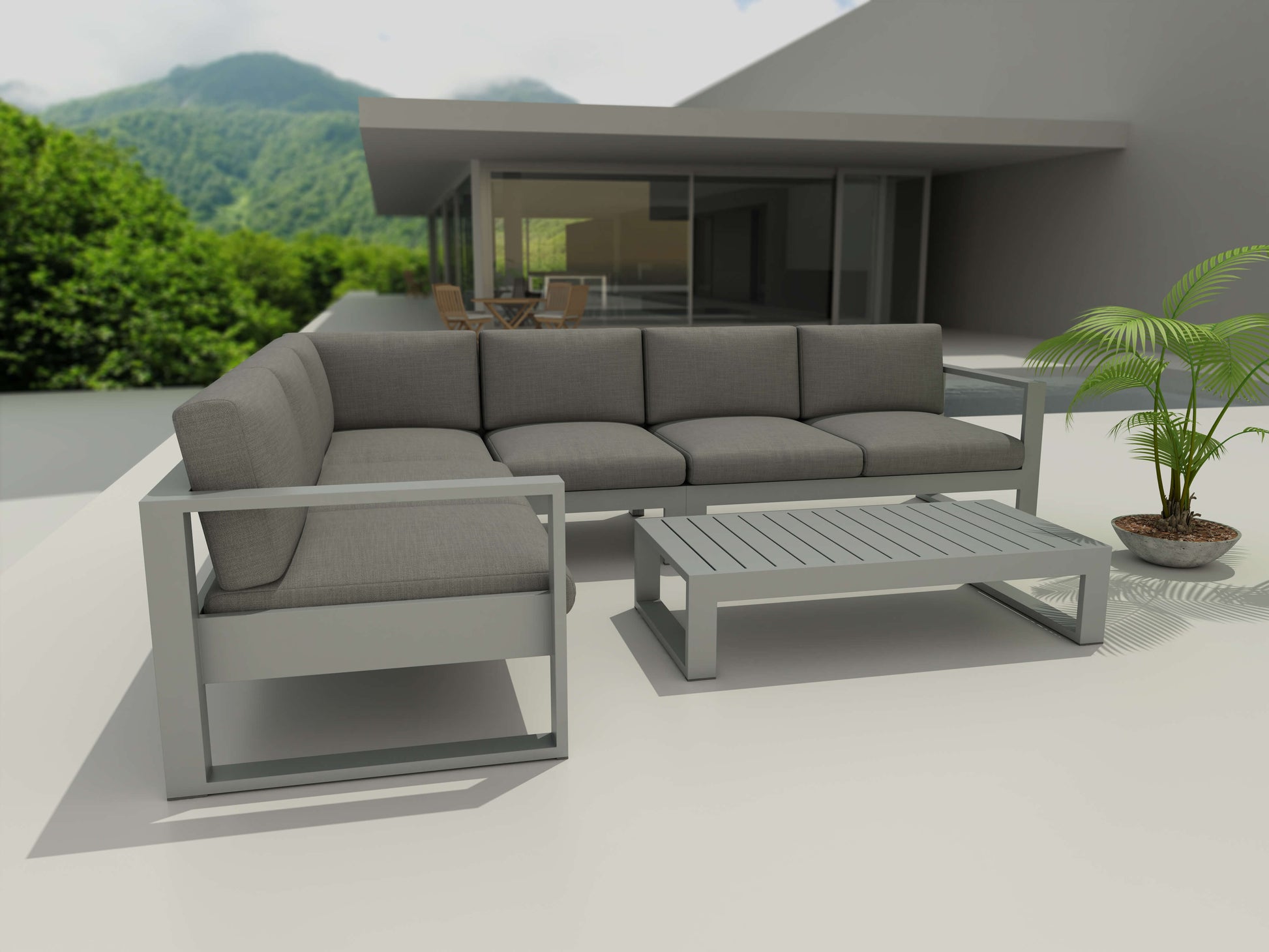 Add a modern look to your patio with the Lucca 5-Piece Deep Seating Set. Machine crafted from Aluminum metal finished with dry powder-coating in grit grey tint ensures a sleek, lightweight, but durable piece of furniture fit for outdoor use. Includes Sunbrella cushions saturated with UV-stable pigments that resist color fade, water, mold and mildew. Various cushion color options and fabric patterns included.
