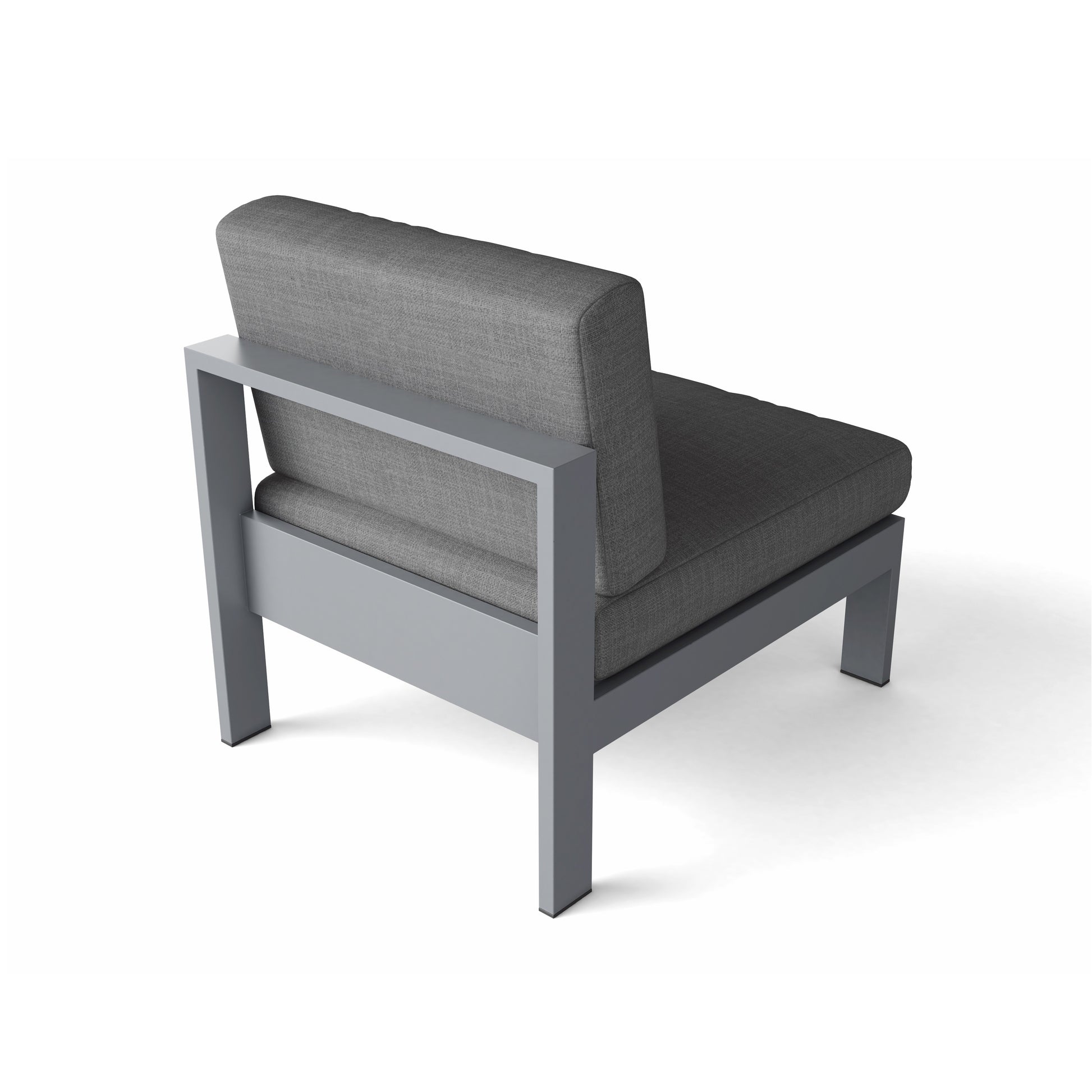 Give your backyard a modern contemporary look with the Luca Deep Seating Center Chair. Sleek, modern, and machine crafted for quality and substance, it features a 2mm thick Aluminum Frame finished with power coating. As the center chair piece of the Lucca Deep Seating Set, be sure to add and mix and match other pieces from the collection to create your custom Lucca Deep Seating Set. Features Non-Marking Black Plastic Foot Caps. Cushion pattern and color choice included. Be sure to contact your representative.