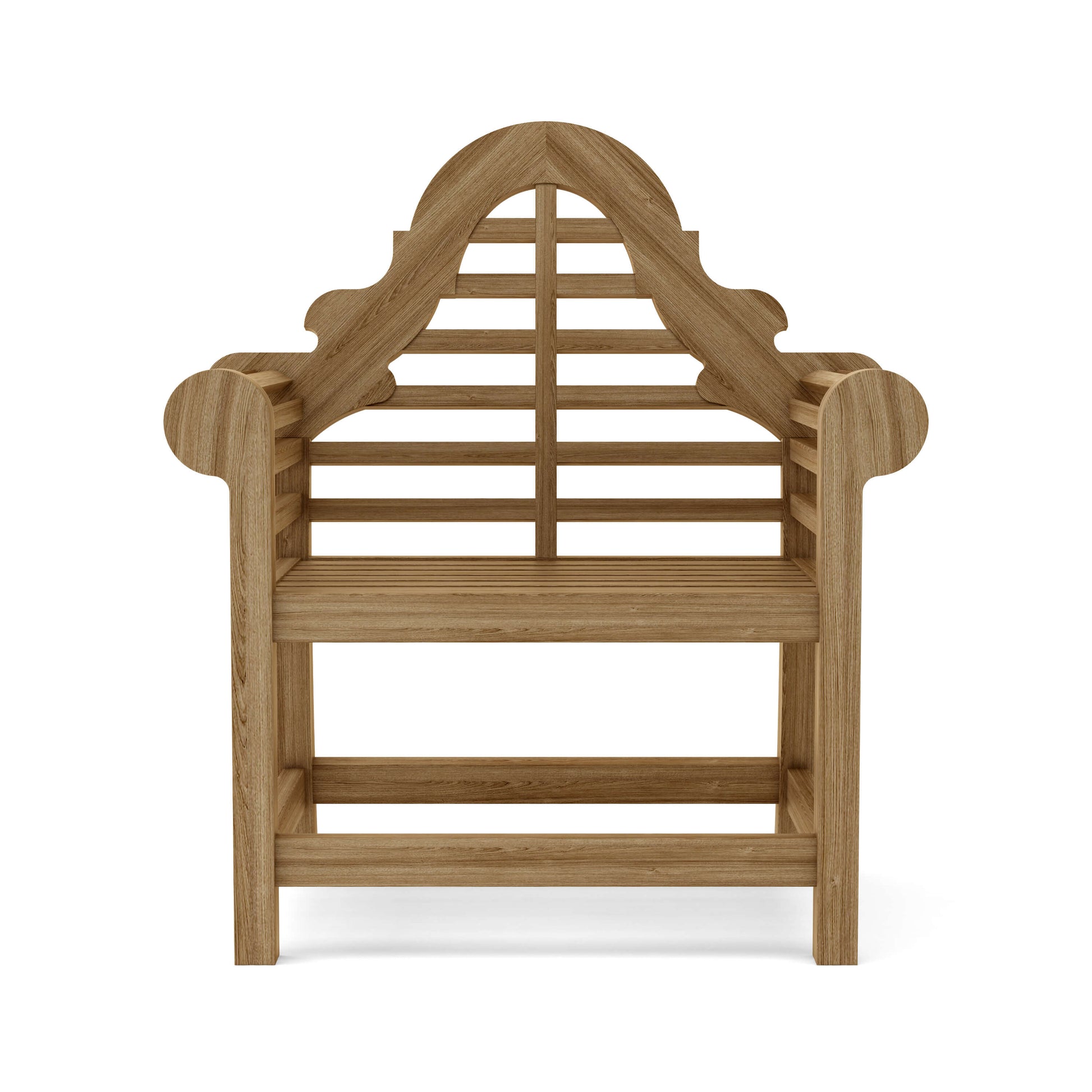 The Marlborough Dining Armchair is a timeless classic faithfully reproduced from the designs of Sir Edwin Lutyens, one of Britain’s most noted architects. The sloping arches and fully scrolled arms are designed to complement and enhance its natural surroundings at any time of the year. Through rain, hail or shine the Marlborough Dining Armchair made of premium grade unfinished teak will embrace any location and impress all who behold it. We have made subtle but careful design changes to ensure excellent back support. Place a single bench or chair under your trees; use a group of benches and chairs for entertaining. Made from premium Grade-A Teak wood sanded smooth without any finish in its natural color and form.