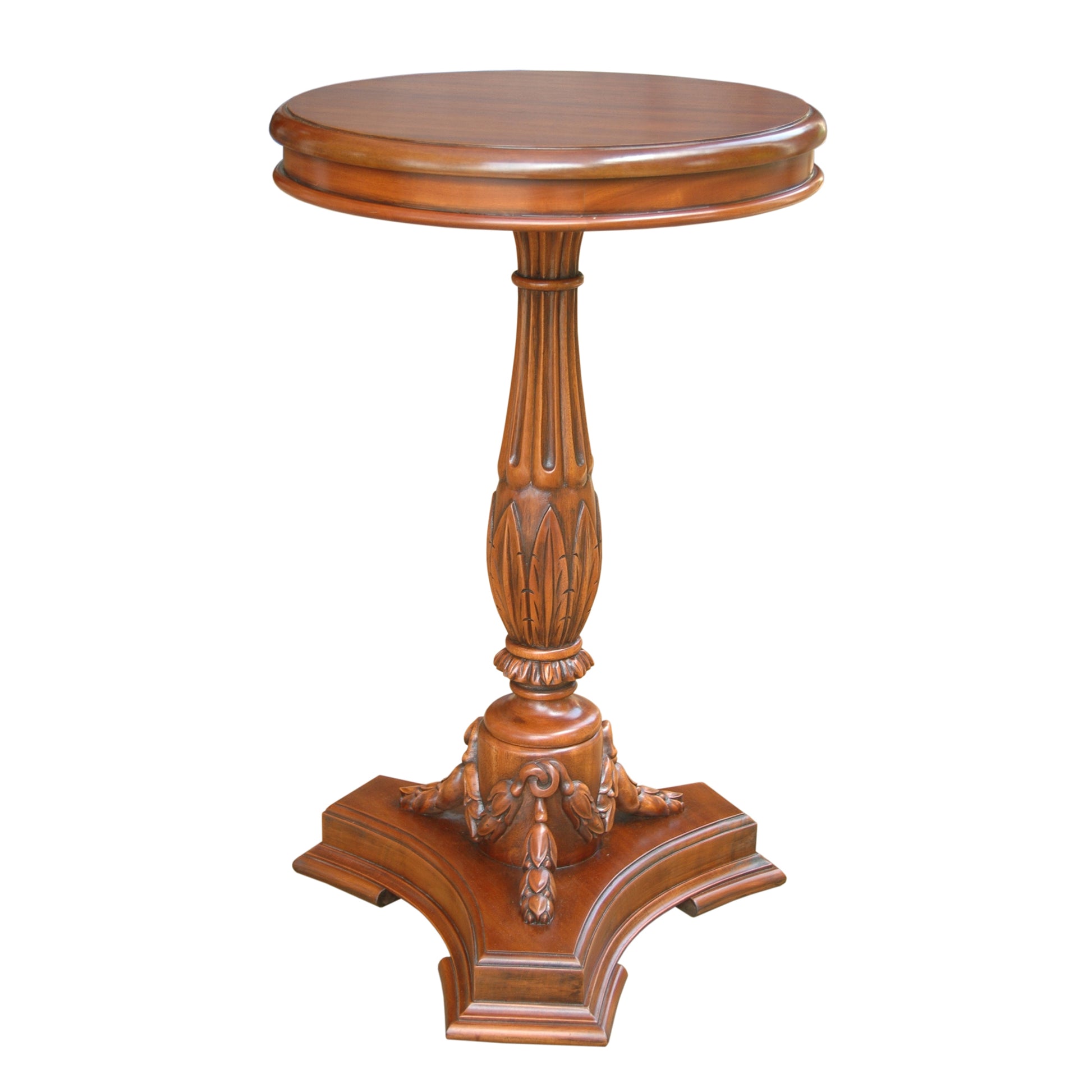 The Occasional Flower Side table is the perfect antique reproduction mahogany pedestal to showcase your flowers or other collectibles. Features floral themed designs elegantly carved around the table.