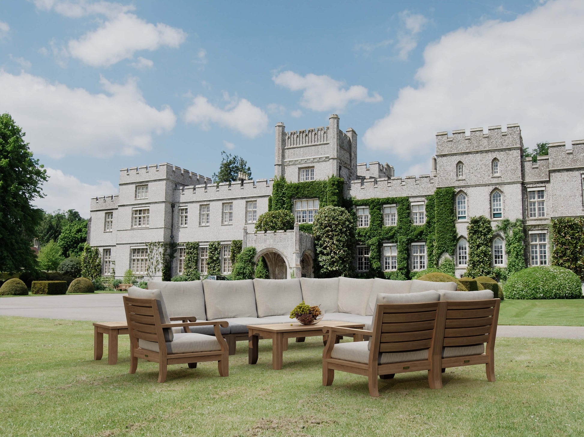 • Expertly Crafted teakwood with 5.5" thick cozy cushions for a luxurious feel.