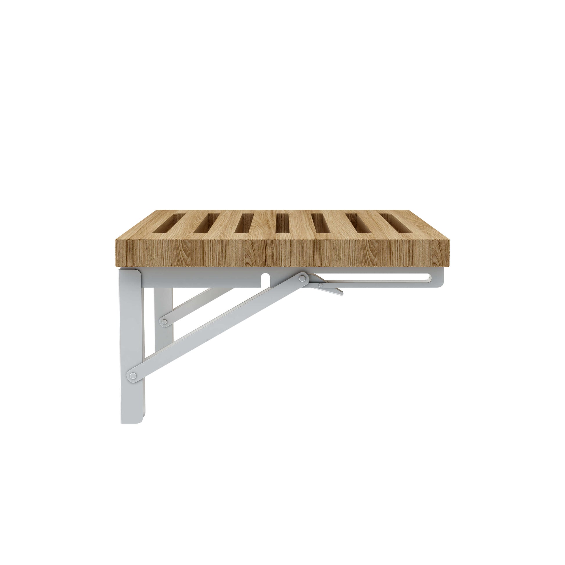 The perfect teak wall mount for the shower, sauna, boat, or other small space area, this Wall Mount Folding Chair folds out when you need to and folds back closed when you don’t. Made from Genuine Premium Grade-A Teak and stainless steel brackets, it is sanded smooth without any finish, making it the perfect material for wet, damp, or other moisture related conditions. With a max load of 500 pounds, this accessory and chair is perfect for placing items and sitting; Stainless steel wall brackets click lock securely when in use.
