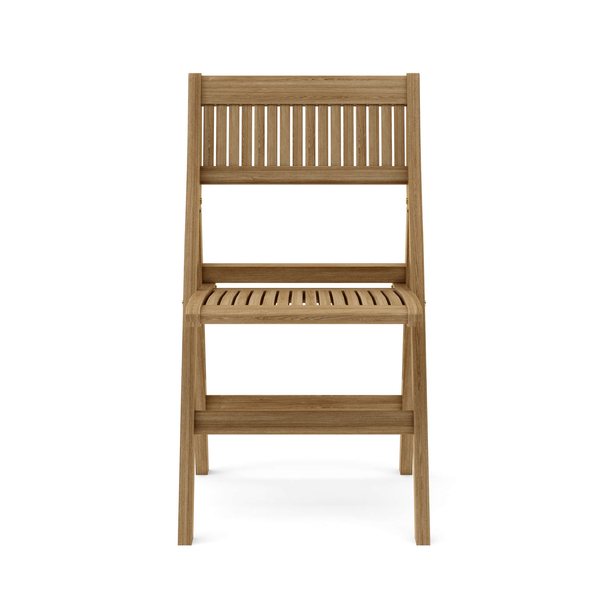 The Windsor folding chair is a sturdy, versatile, and compact side chair making it the perfect complement to our bistro tables. The chair also folds easily for moving and storing so you can accommodate guests when you need and hide the set when you don’t. Made from the finest solid teak, which is strong and durable, yet light enough to allow for easy storage. This is a beautiful and functional piece of furniture for your patio or terrace. A perfect piece for restaurant use or Café, the folding chair is without finish, in its natural teak form and color.
