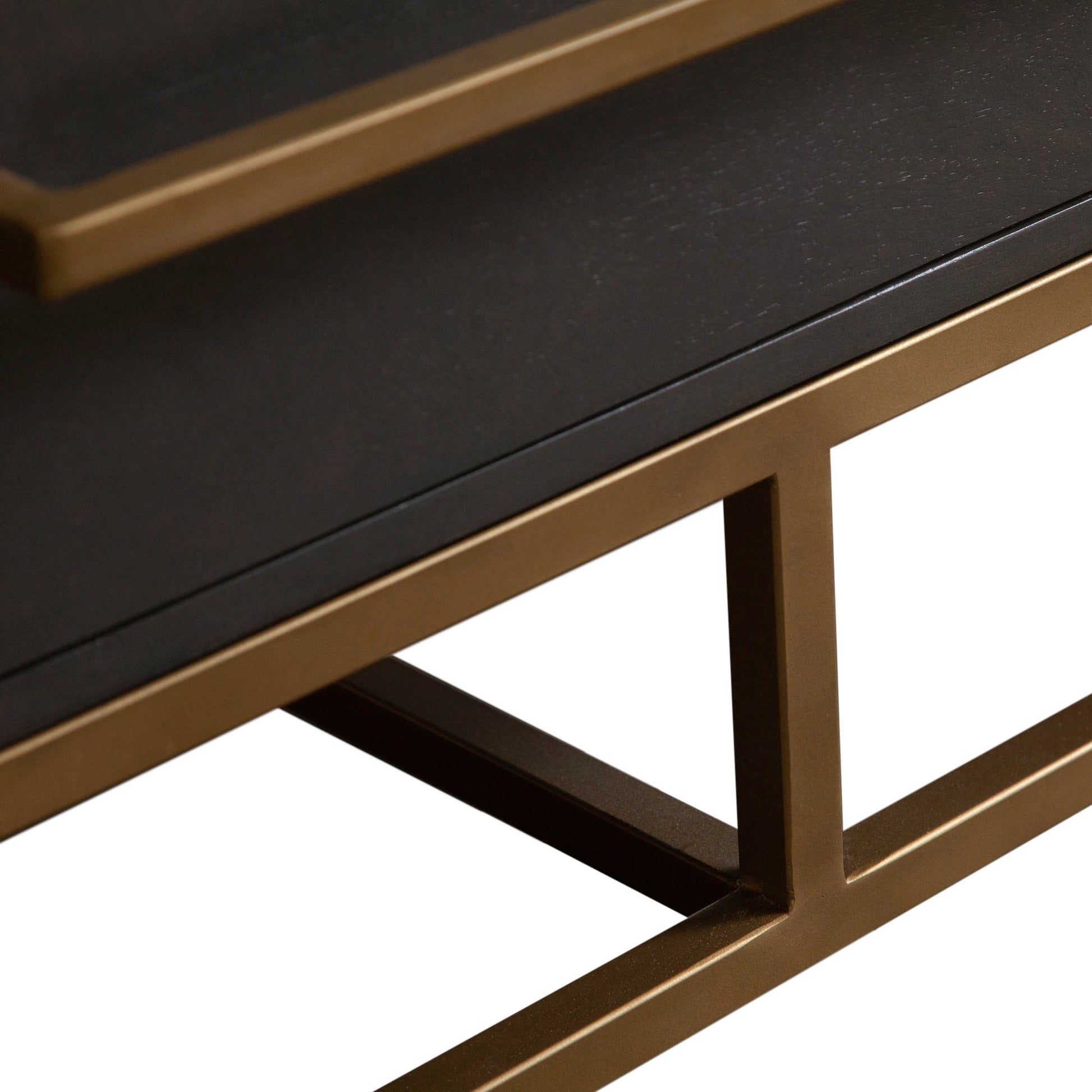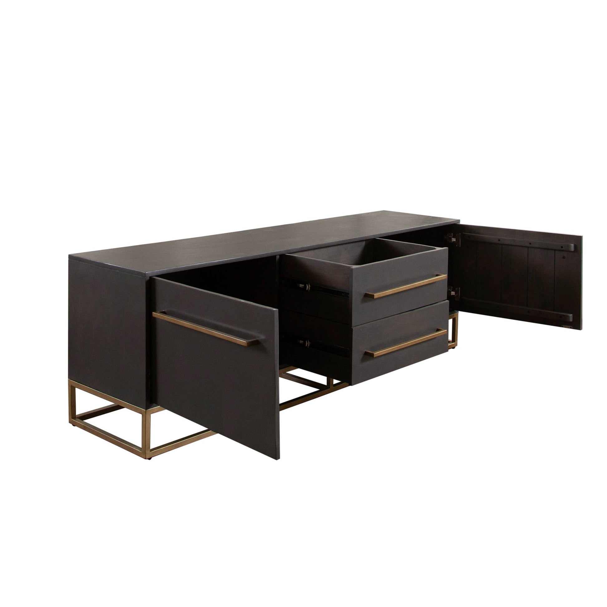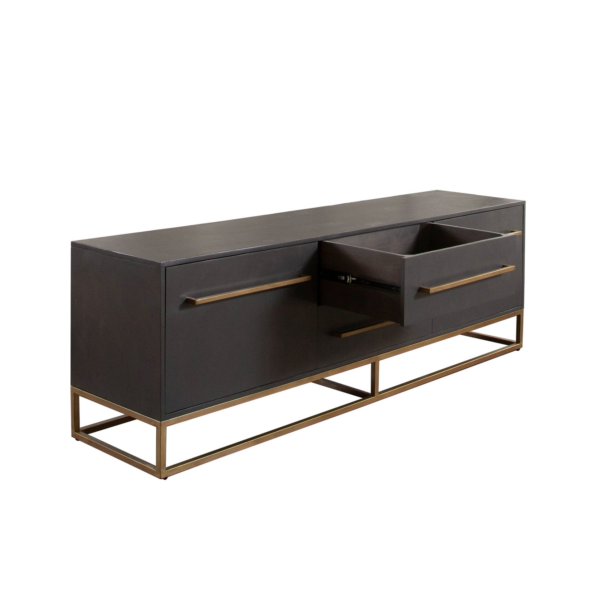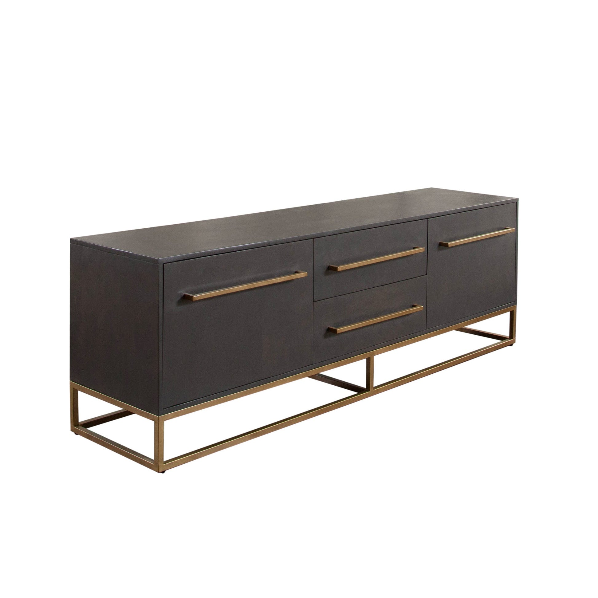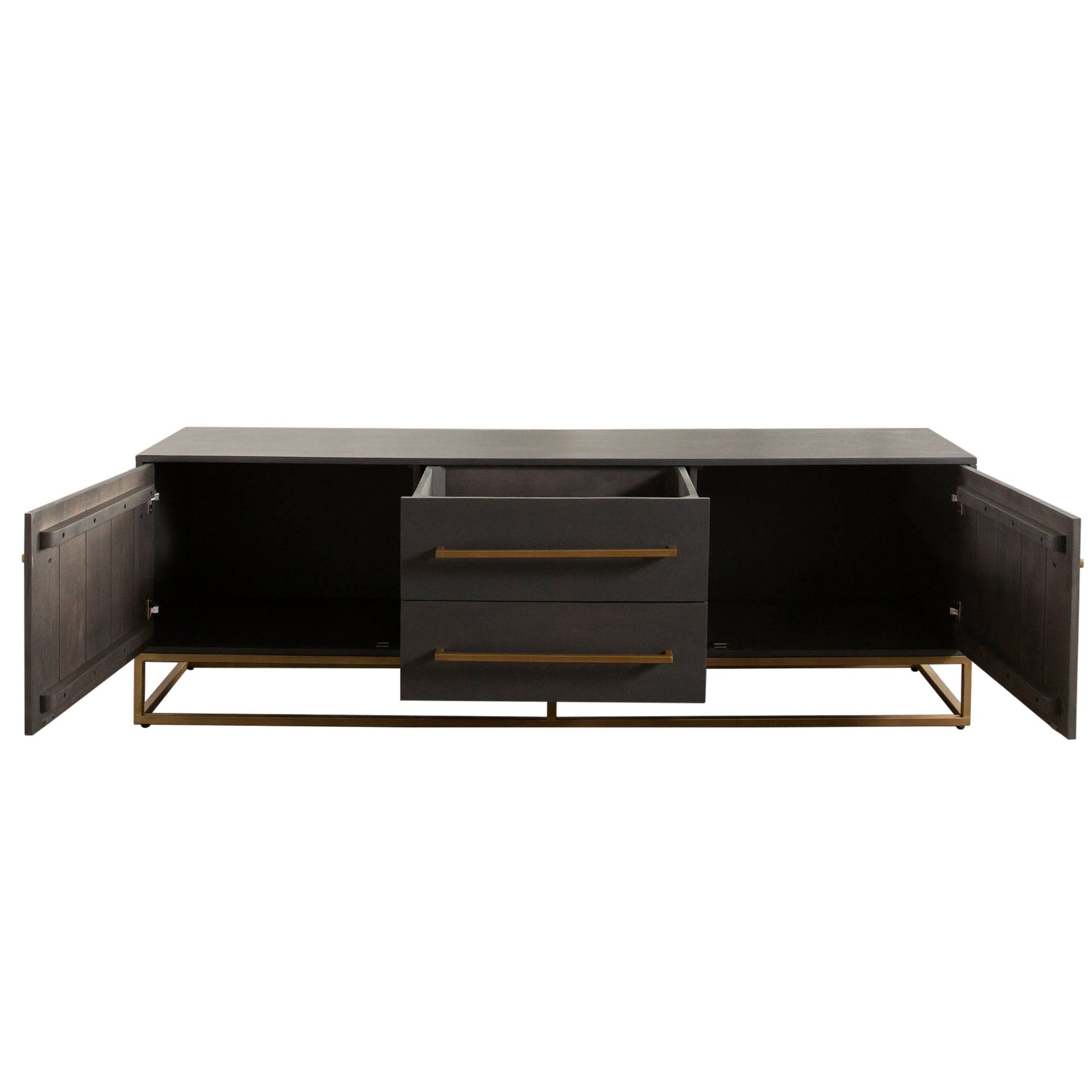 Encore Solid Mango Wood 2-Door / 2-Drawer Entertainment Cabinet in Grey Oak Finish w/ Gold Metal Handle & Base by Diamond Sofa