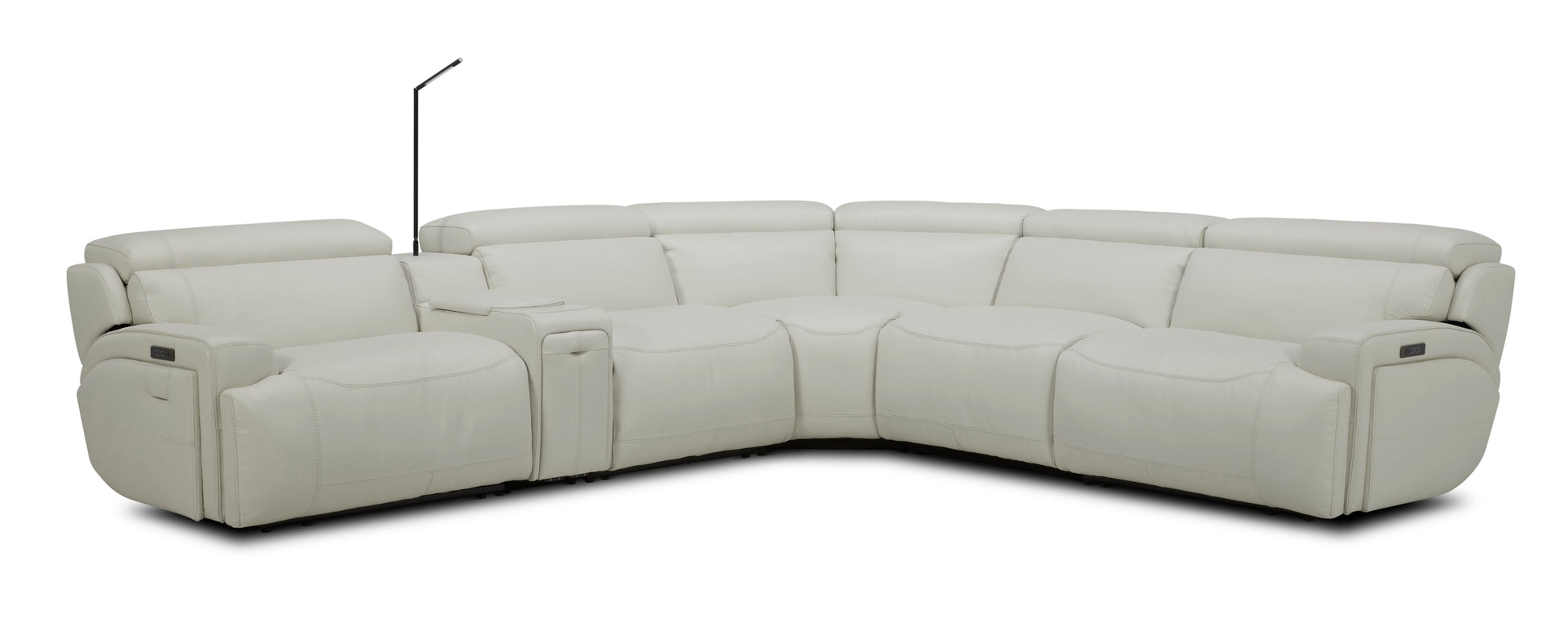 The 6095B Sectional by J&M Furniture combines luxurious comfort with advanced functionality. Upholstered in premium full leather, this sectional is available in white or grey, ensuring a sophisticated addition to any living space. This model features three zero-gravity recliners, enabling you to achieve ultimate relaxation. The end pieces are both equipped with pull-out storage compartments and USB/USB-C ports all conveniently located for added practicality.