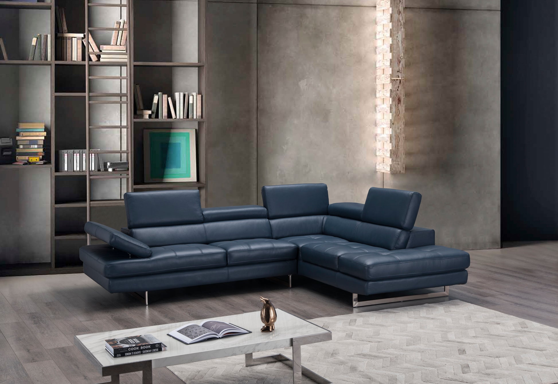 J&M Furniture A761 Italian Leather Sectional Blue In Right Hand Facing