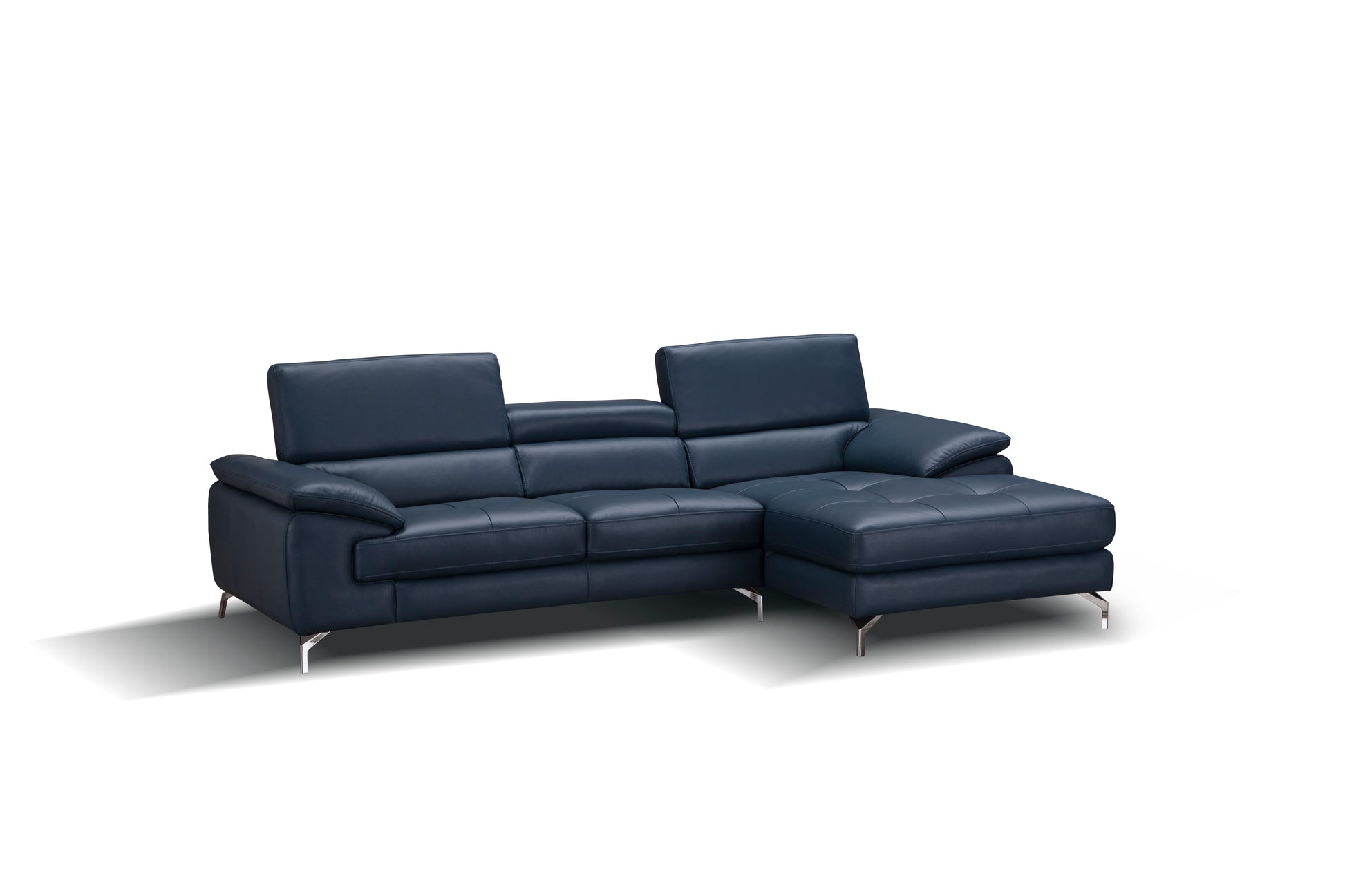 J&M Furniture A973B Italian Leather Mini Sectional Right Facing Chaise in Blue