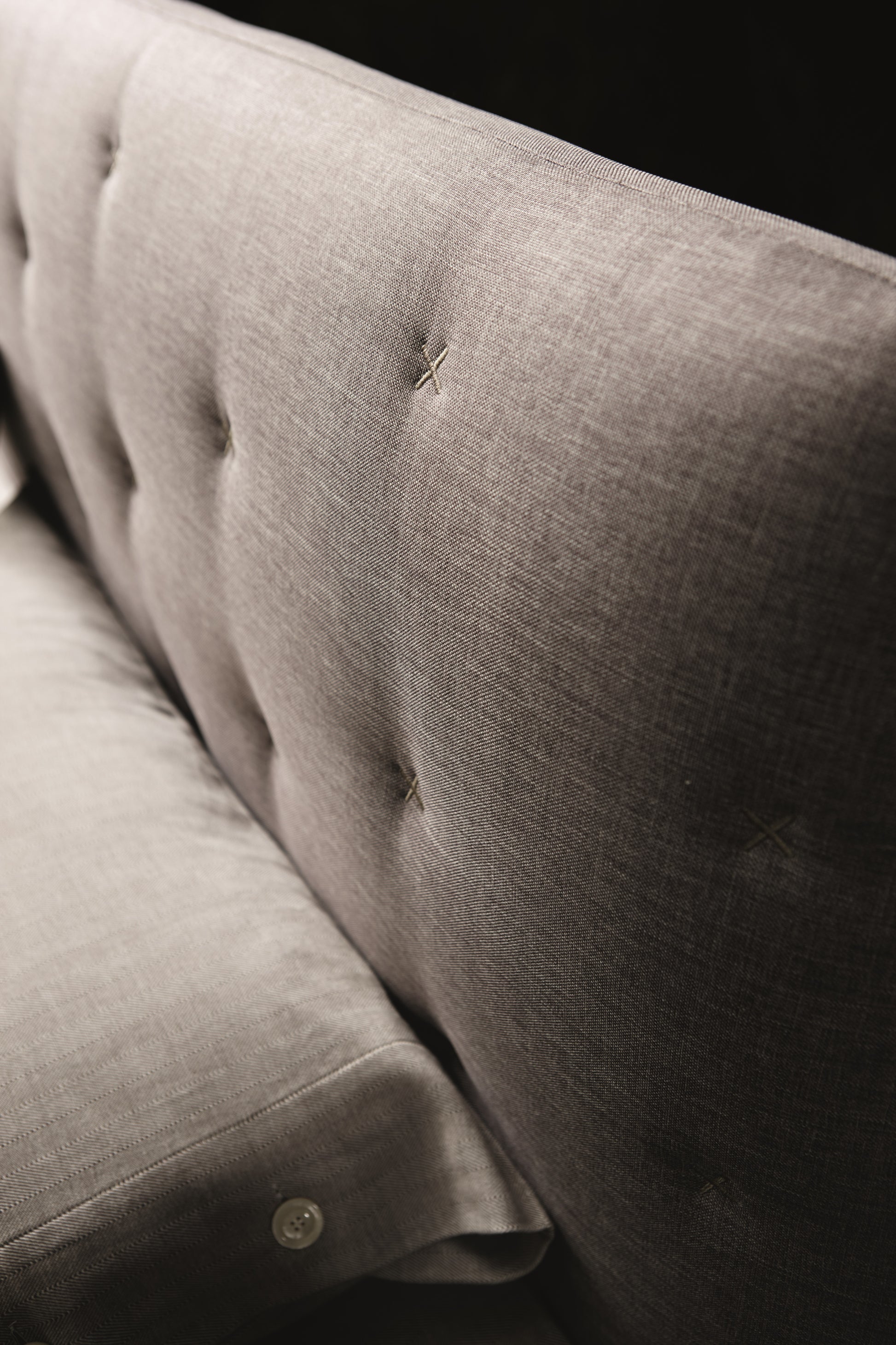 This bed is crafted in a taupe gray fabric which is water repellent &