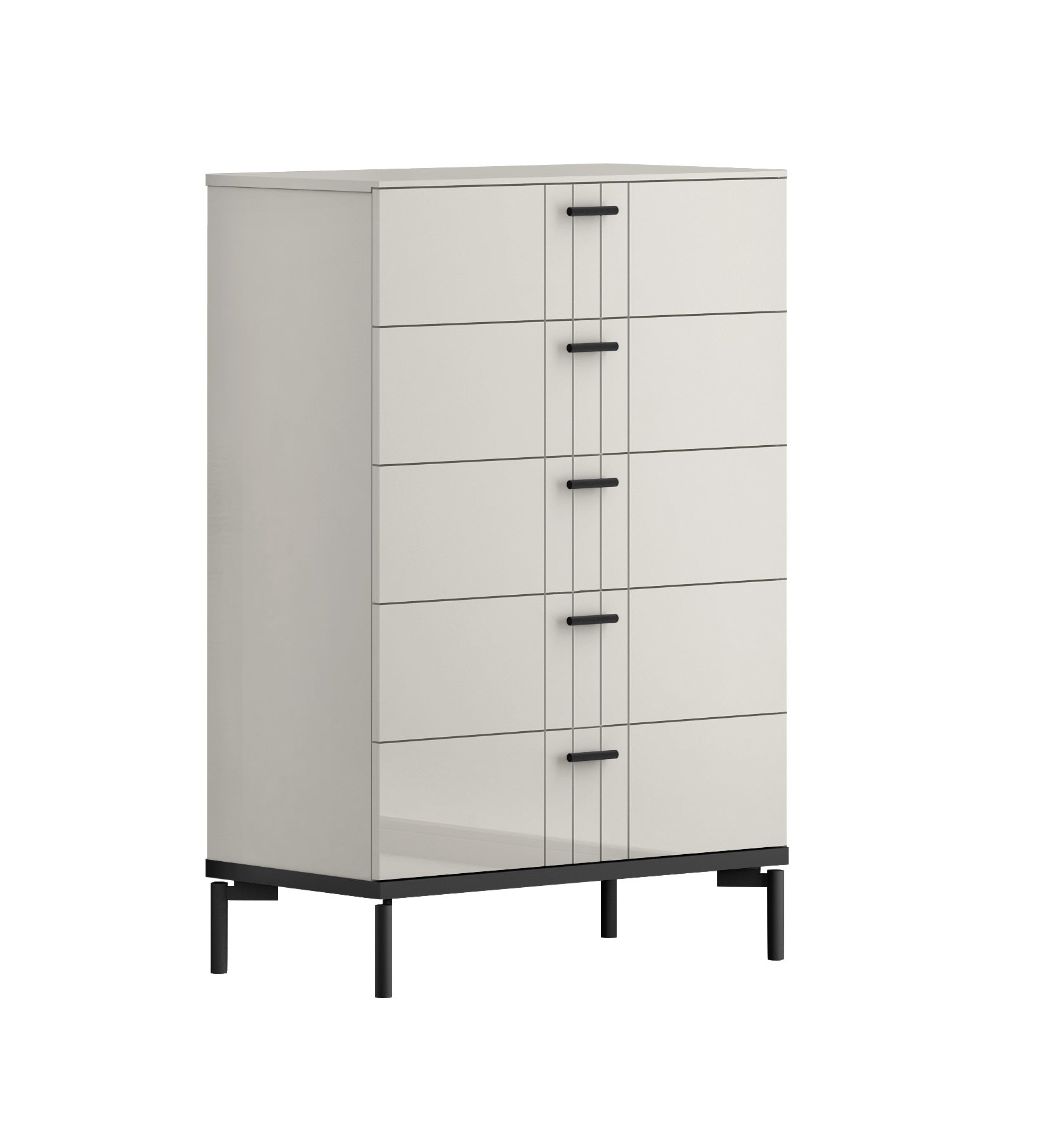 The Bella Bedroom Collection by J&M is the newest addition to our Modern Bedroom Category. Blending modern aesthetic with contemporary elements, the Bella Collection is a masterpiece of design. The Headboard features a beautiful grey leatherette upholstery, with a pleated pinstripe design adorning the center. The pinstripe design is carried over into all of the case goods, featuring the same look throughout all pieces. The grey high gloss lacquer finish is the perfect compliment to the centerpiece headboard. All pieces are also accented with matte black hardware and legs, really setting this style apart by utilizing striking contrast to the fullest extent. All drawers feature our premium soft close mechanism, and the headboard features an encompassing LED light strip, further accentuating the stunning upholstery finish.