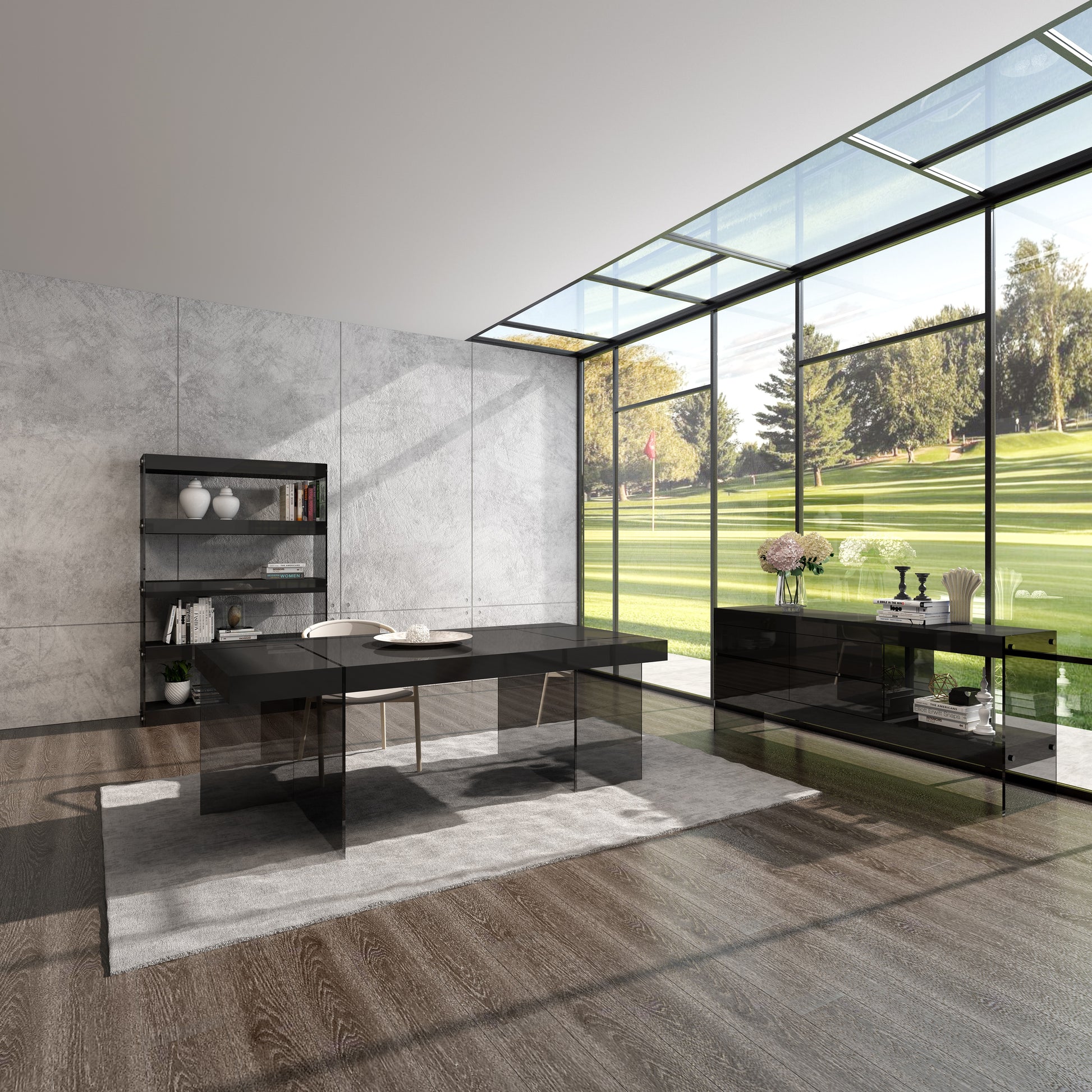 *Customer also has the option of adding matching Buffet, which follows identical concept of the dining set, with glass feet and grey finish.