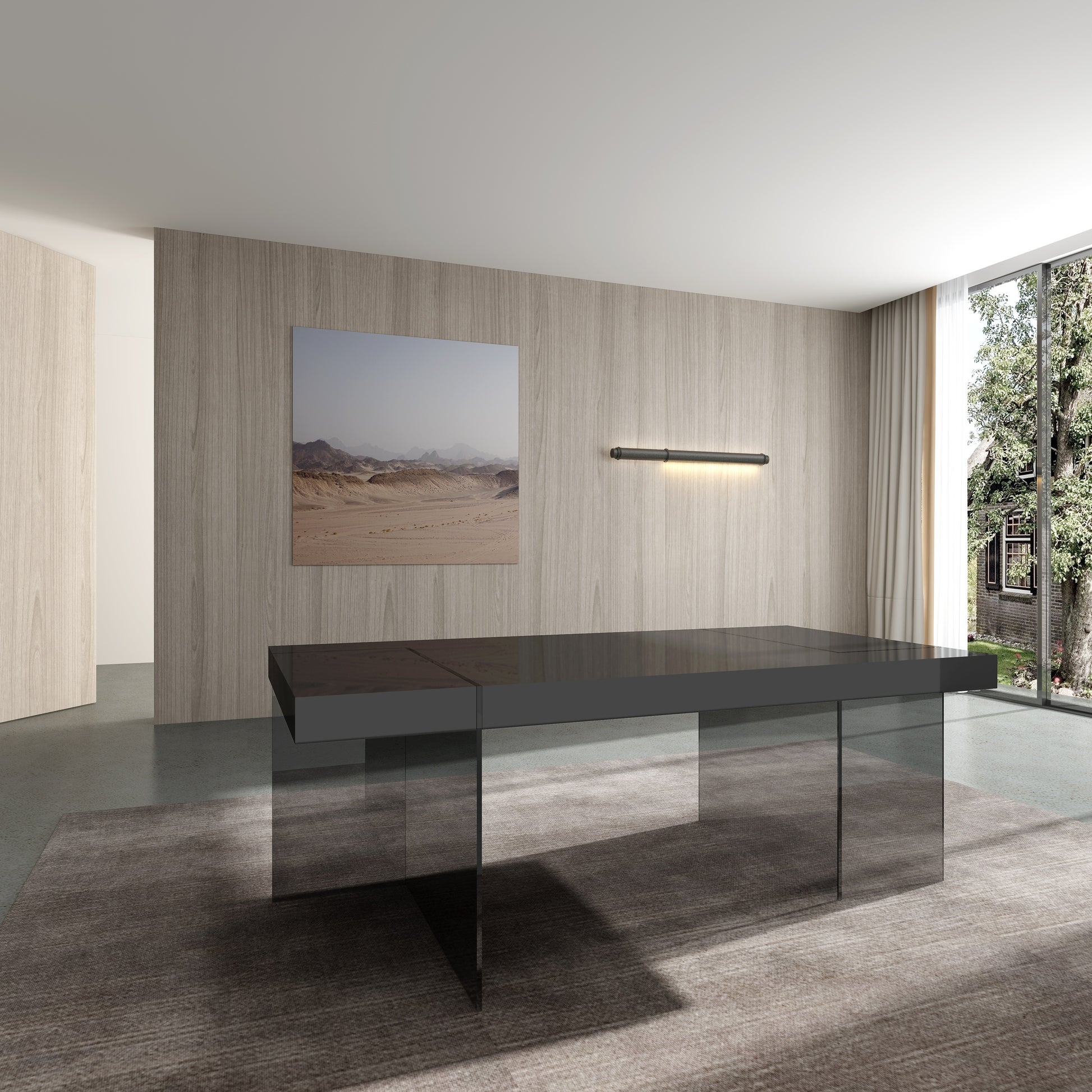 *Customer also has the option of adding matching Buffet, which follows identical concept of the dining set, with glass feet and grey finish.