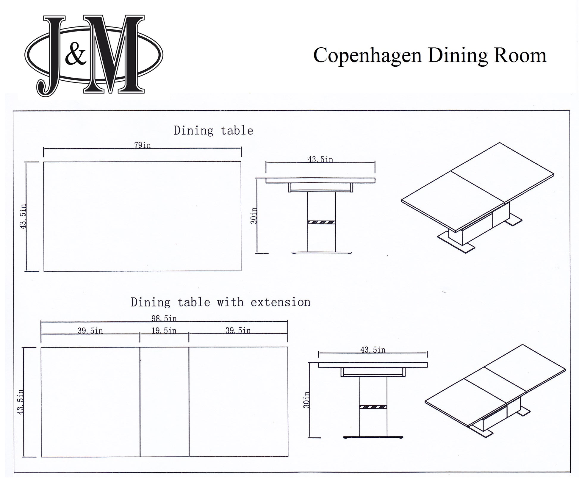 Dining Table - 79-98.5" L x 43.5" D x 30" H