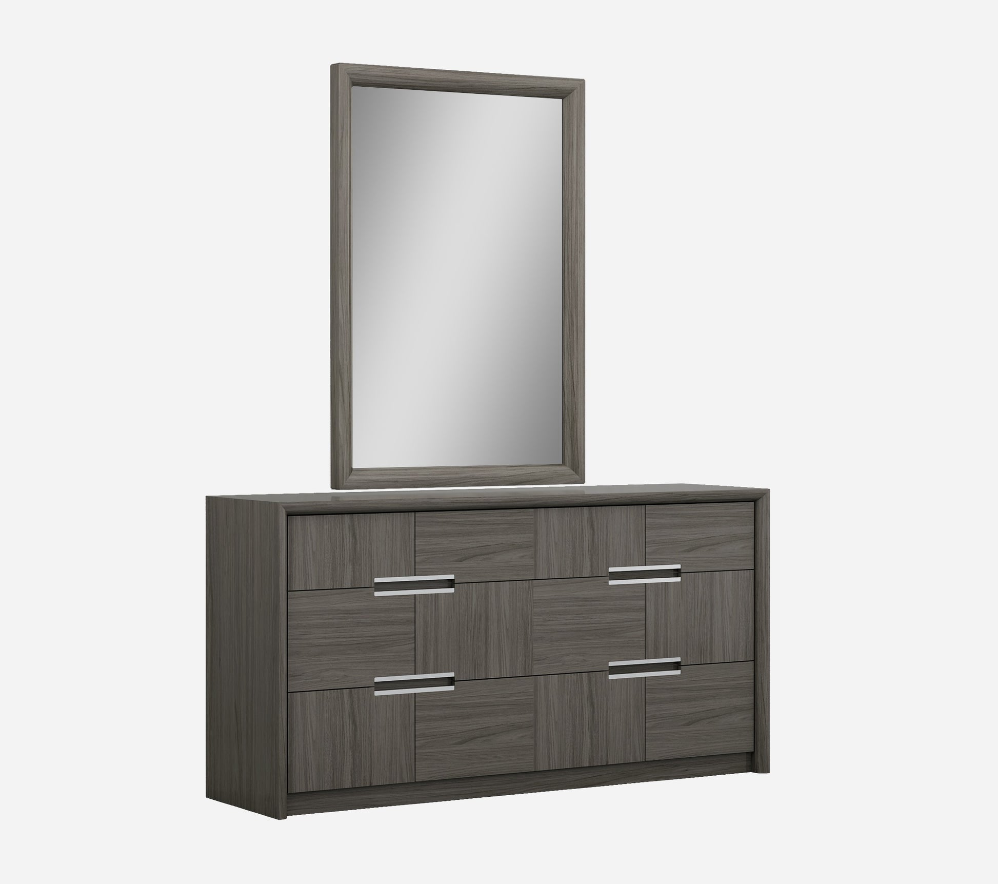 At J&M, innovation has always been part of the production culture. The Copenhagen concentrates bold style and contemporary comport while guaranteeing maximum quality.The Copenhagen features a majestically strong appearance. With its tall upholstered headboard and striking contrast of grey lacquer & taupe headboard. Chrome accents adorn the case goods and foot of the bed. Uniquely crafted with trim proportions, the Copenhagen can accommodate any room type.