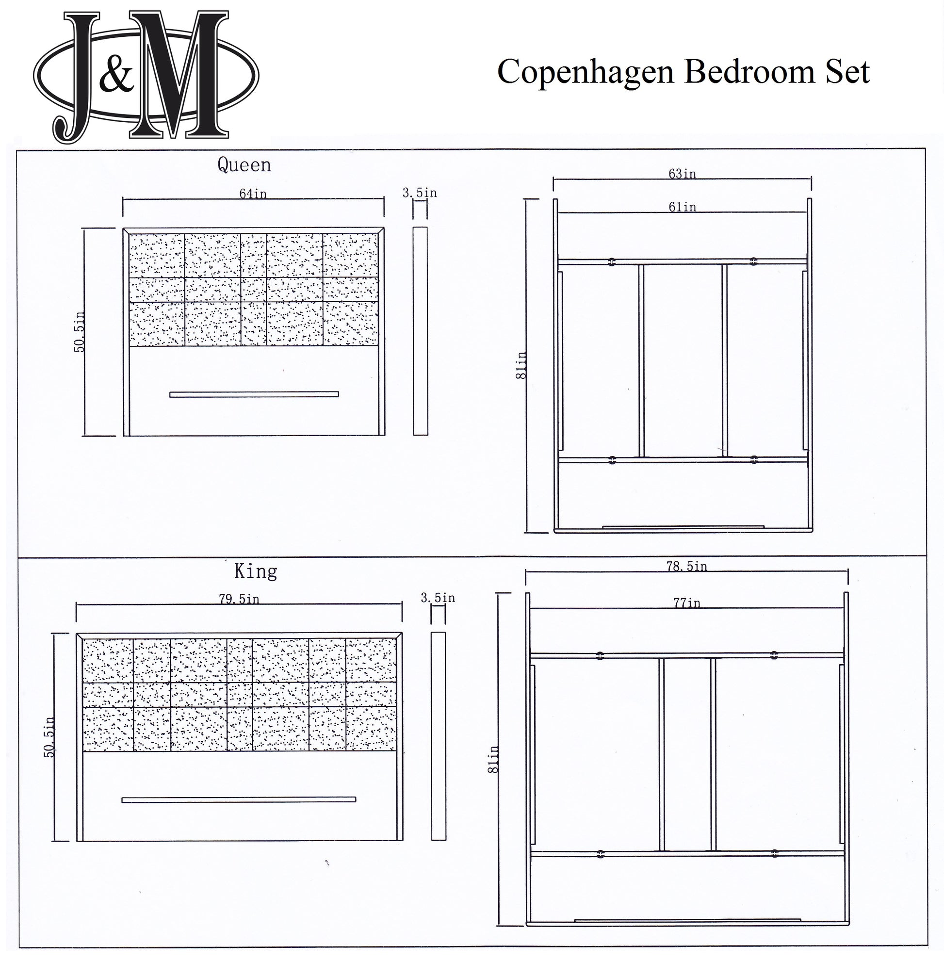 At J&M, innovation has always been part of the production culture. The Copenhagen concentrates bold style and contemporary comport while guaranteeing maximum quality.The Copenhagen features a majestically strong appearance. With its tall upholstered headboard and striking contrast of grey lacquer & taupe headboard. Chrome accents adorn the case goods and foot of the bed. Uniquely crafted with trim proportions, the Copenhagen can accommodate any room type.